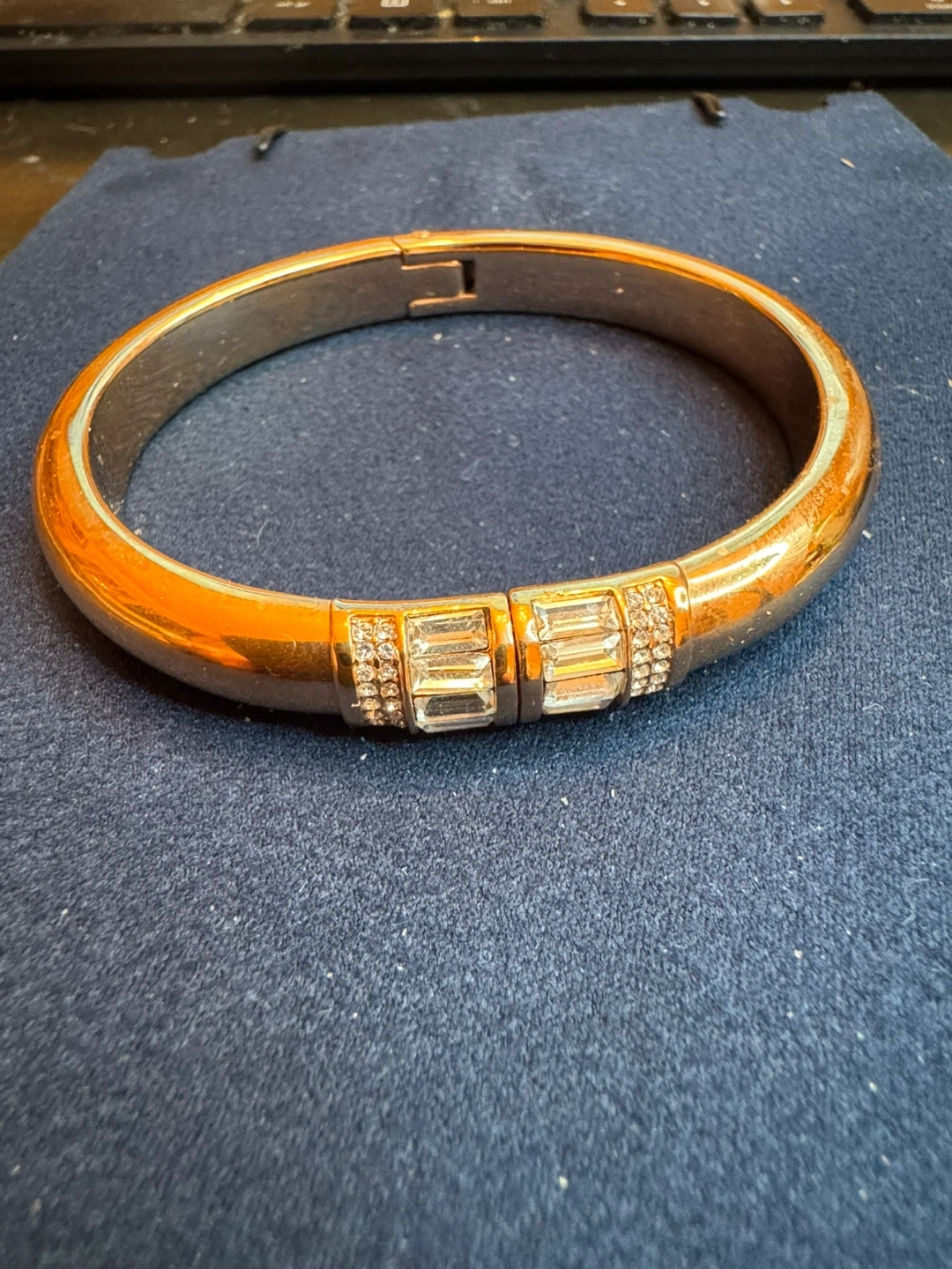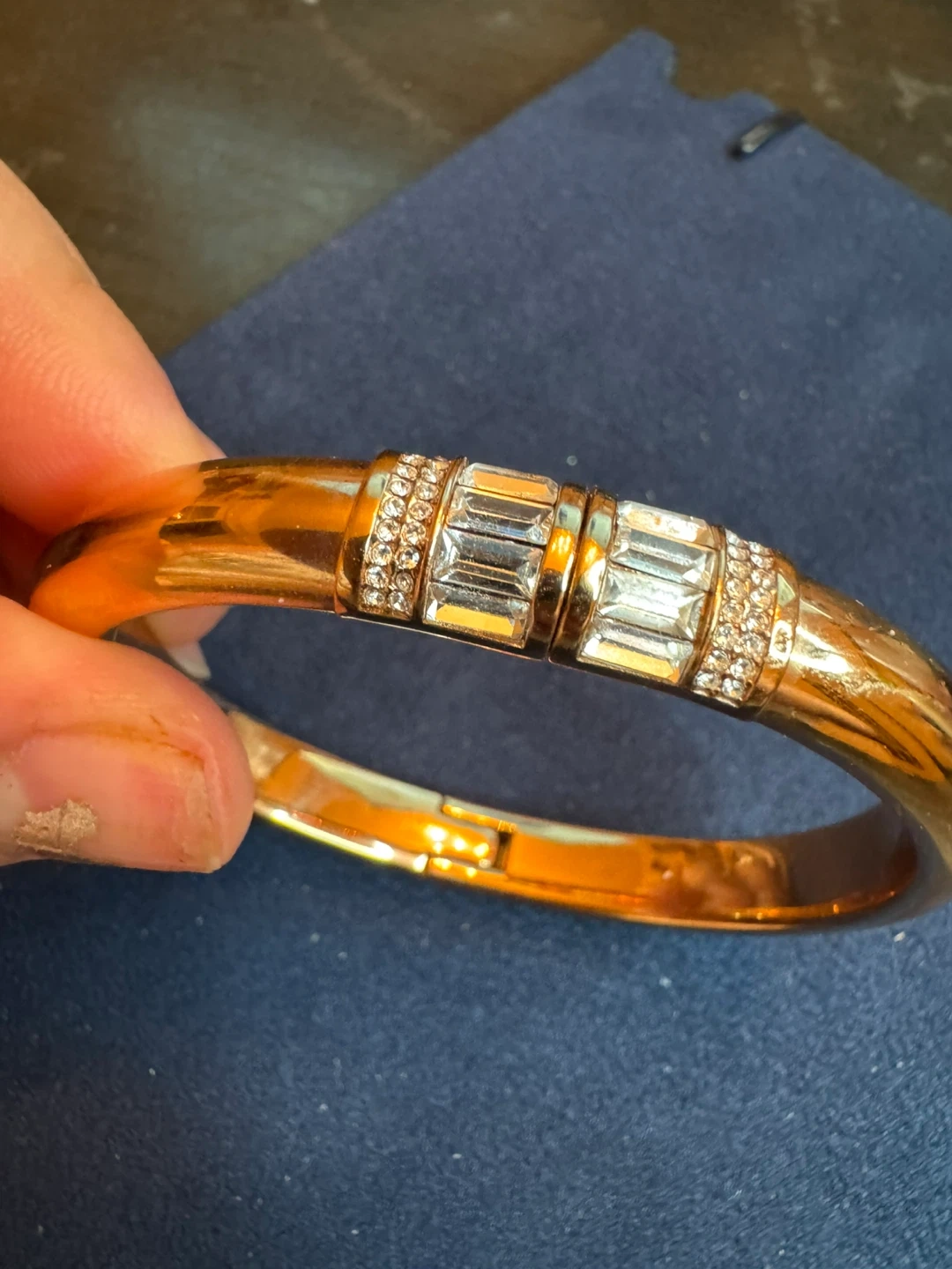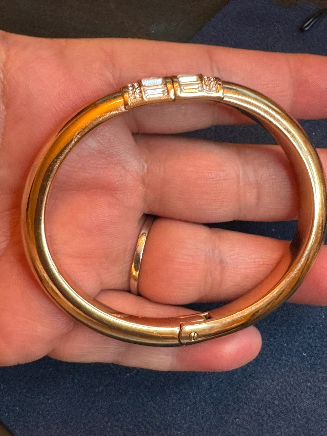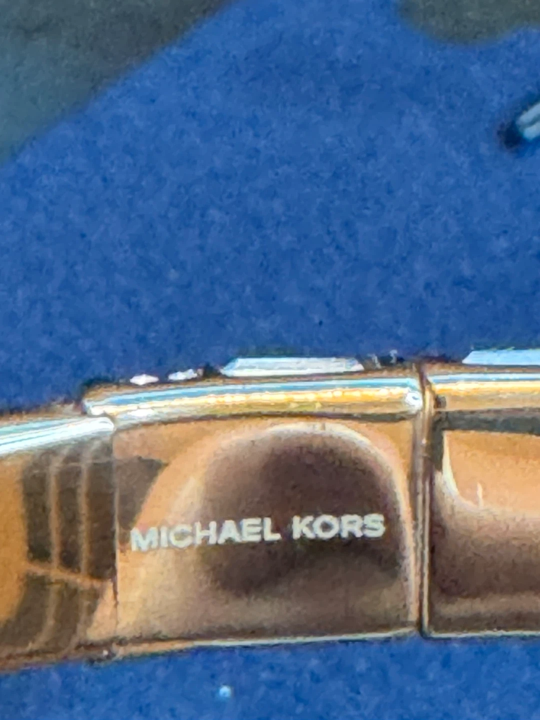 Selling a beautiful Michael Kors bangle bracelet in rose gold tone. It features a secure clasp and is adorned with crystals for a touch of sparkle. Perfect for adding a bit of elegance to any outfit!