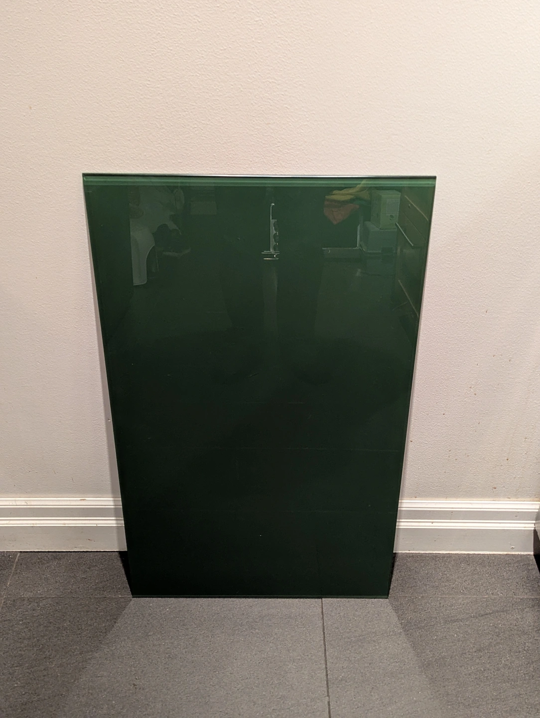 Green glass top for an Ikea Malm Dresser. It is in good condition and would be great for other uses!