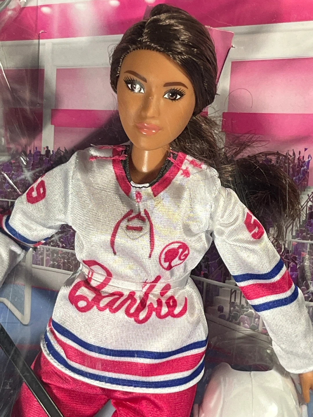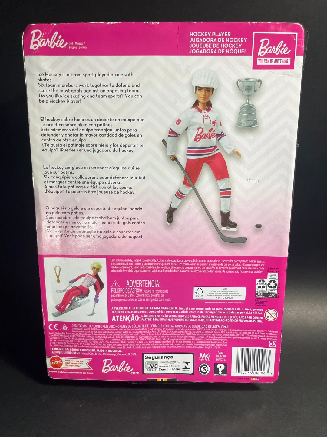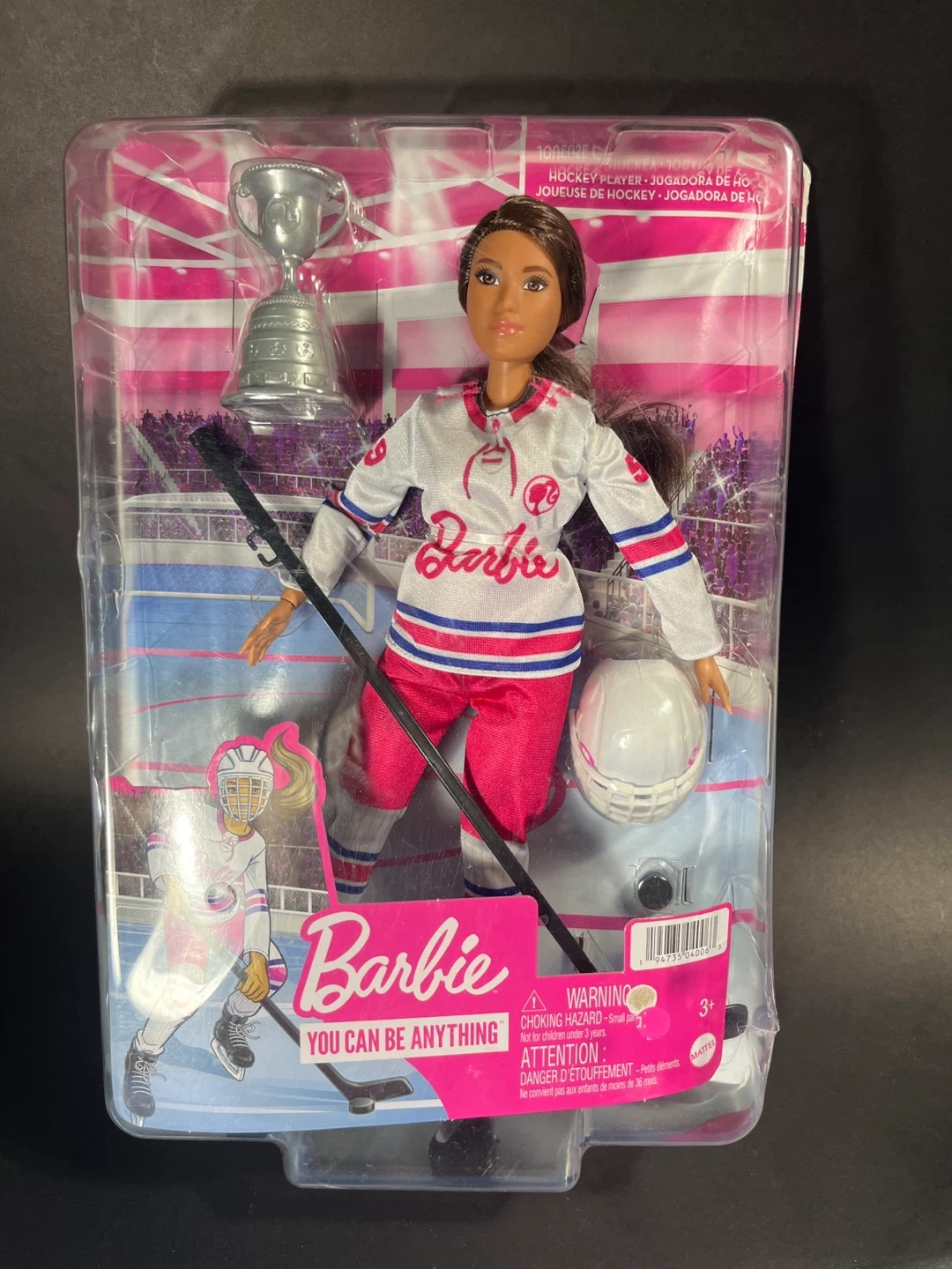 Selling a brand new Barbie Hockey Player doll! It comes in the original box and includes the doll, hockey stick, helmet, and trophy. Perfect for Barbie collectors or hockey fans