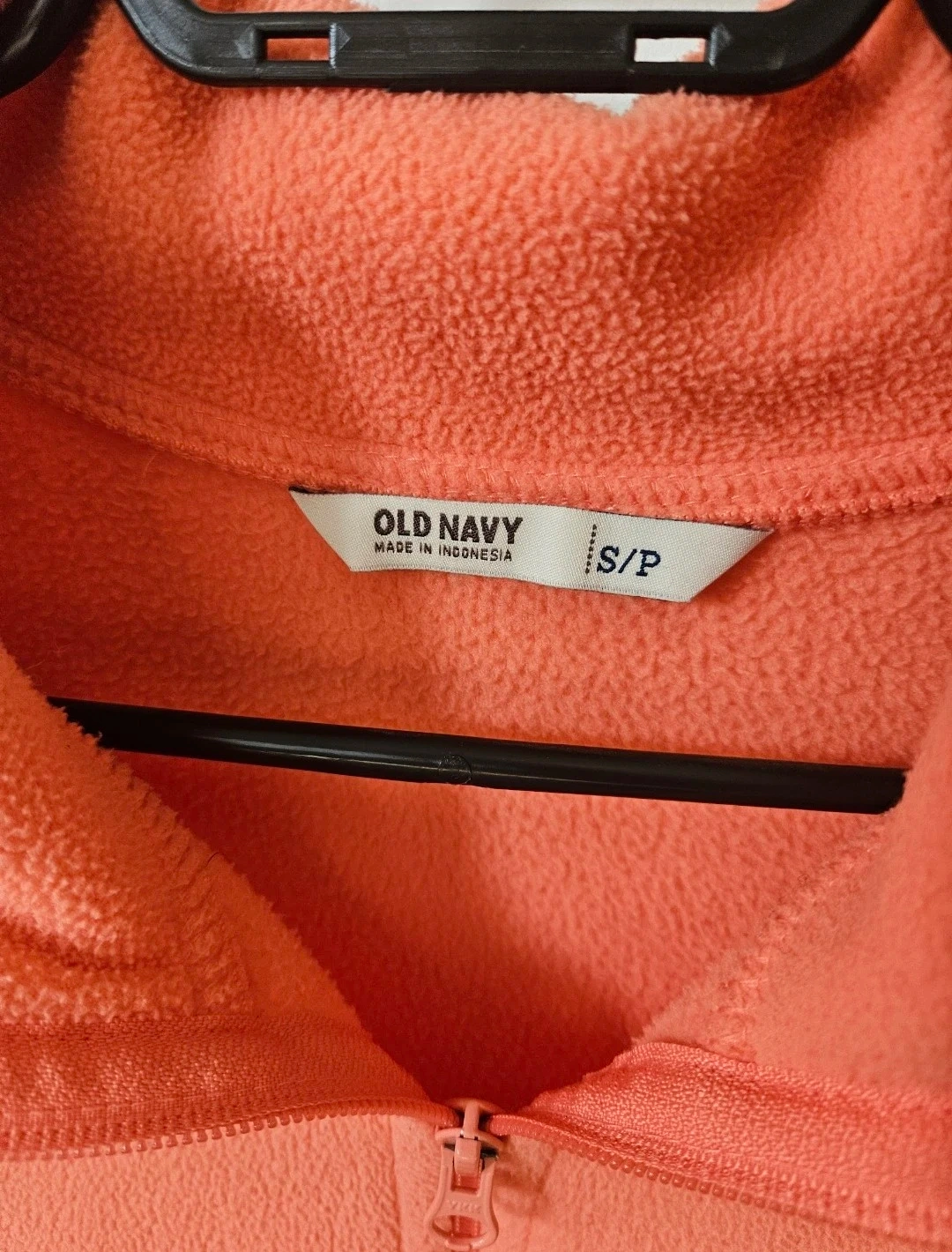 Cozy Old Navy fleece jacket in a lovely coral colour! It's a size small and has a full zip. It looks like new. Perfect for layering or wearing on its own during cooler days.