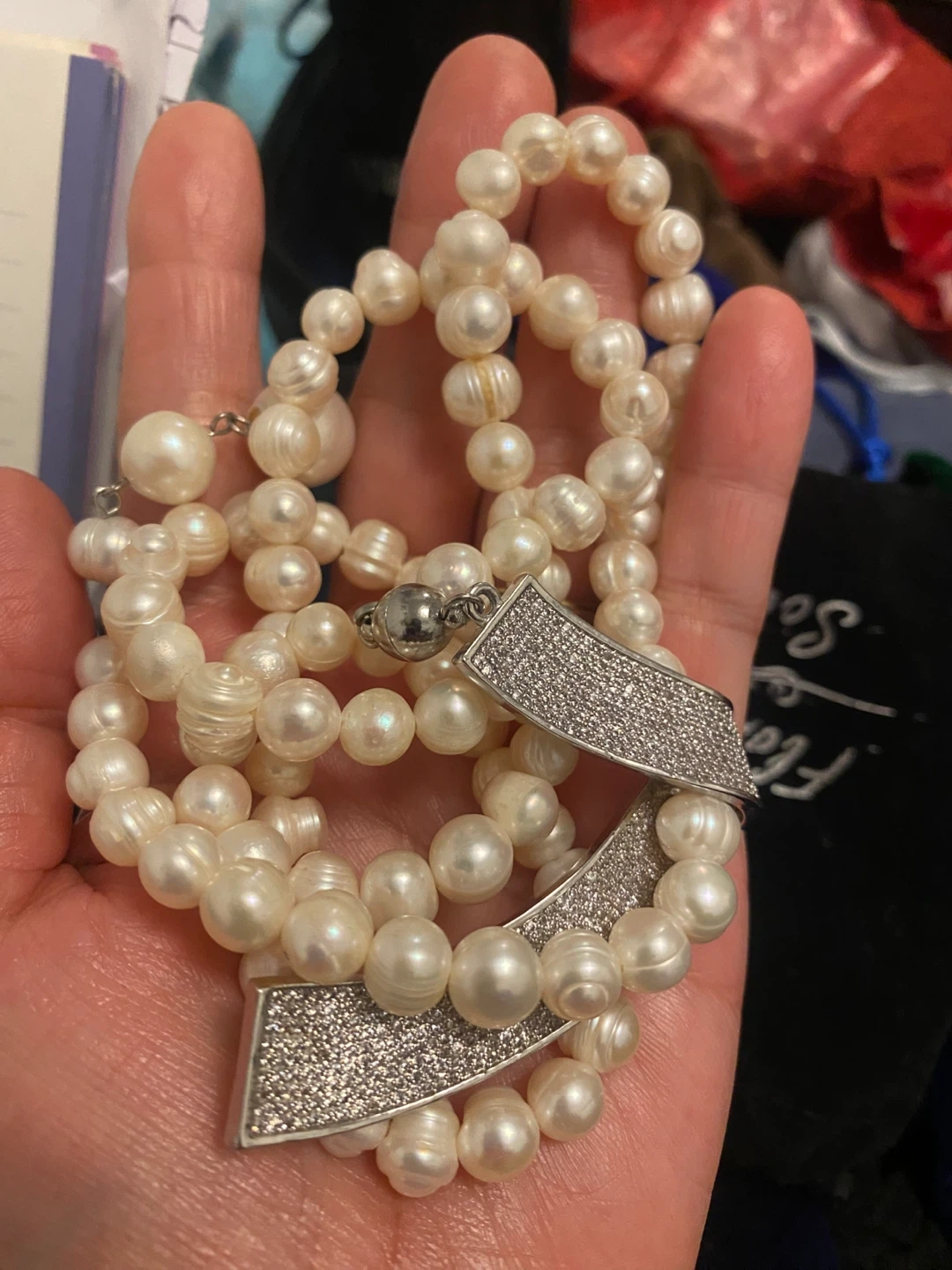 Buy & SellPearl NecklacePearl Necklace$116A beautiful pearl necklace with a decorative clasp. It's in great condition and ready to add a touch of elegance to any outfit!ConditionLike newSize24”BrandPearls WHERE TO MEETSherbrooke EdmontonView MapSELLERverifiedSarinratSherbrooke812 reviews0 chats·0 favorites·41 viewsSEND CHAT TO SELLERHi Sarinrat! I’m interested in your listing.Hi Sarinrat! I’m interested in your listing.Get the Karrot app to chatSign In to chat