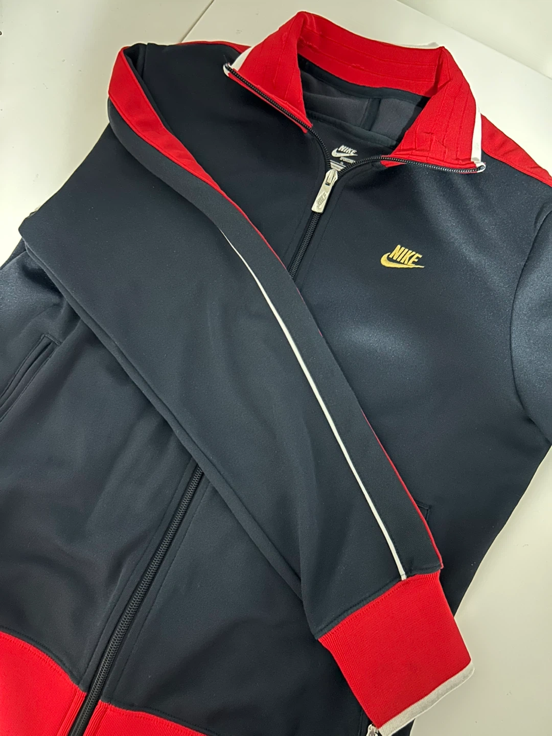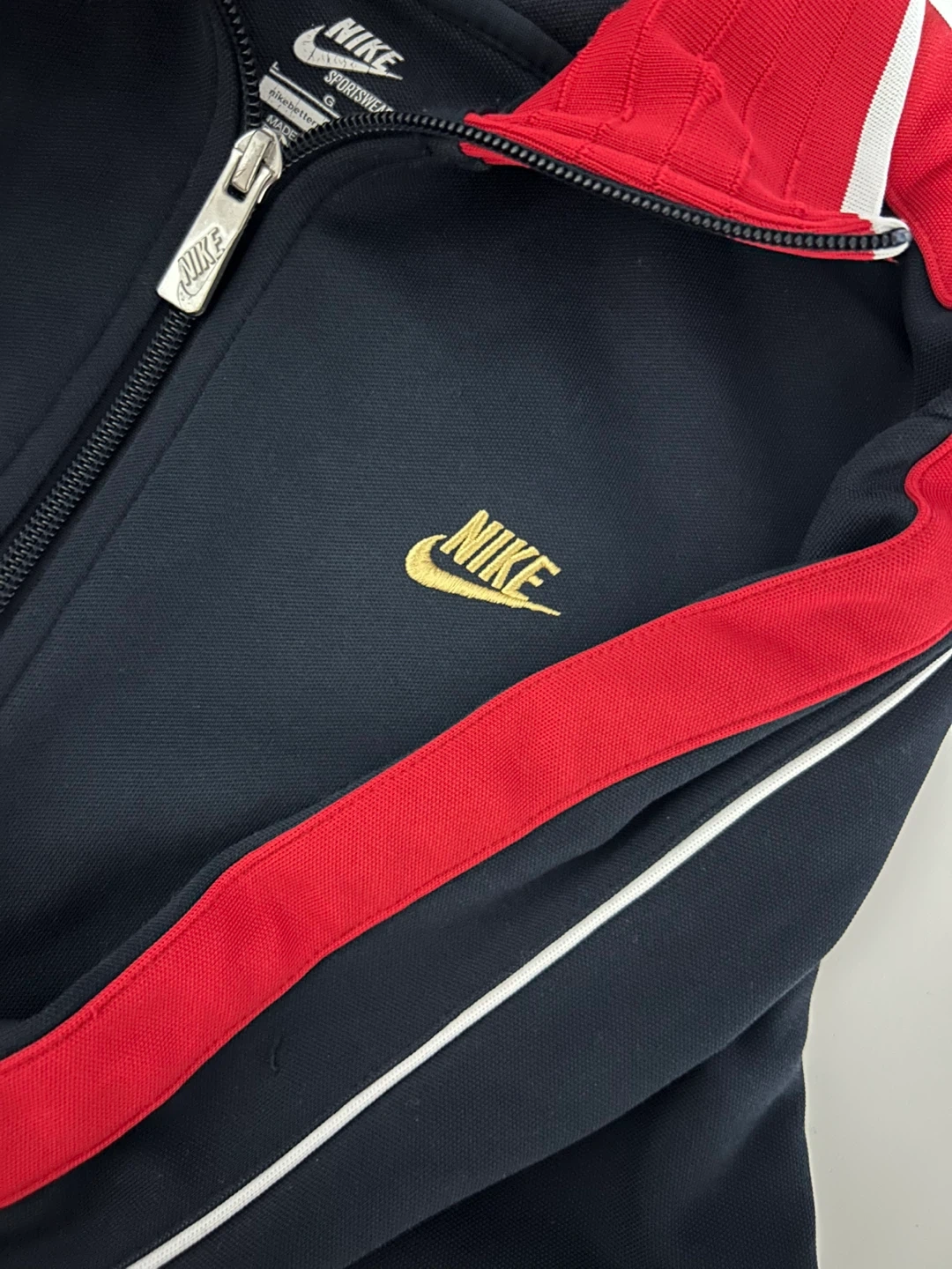Authentic Nike’s track jacket in color Navy and red.