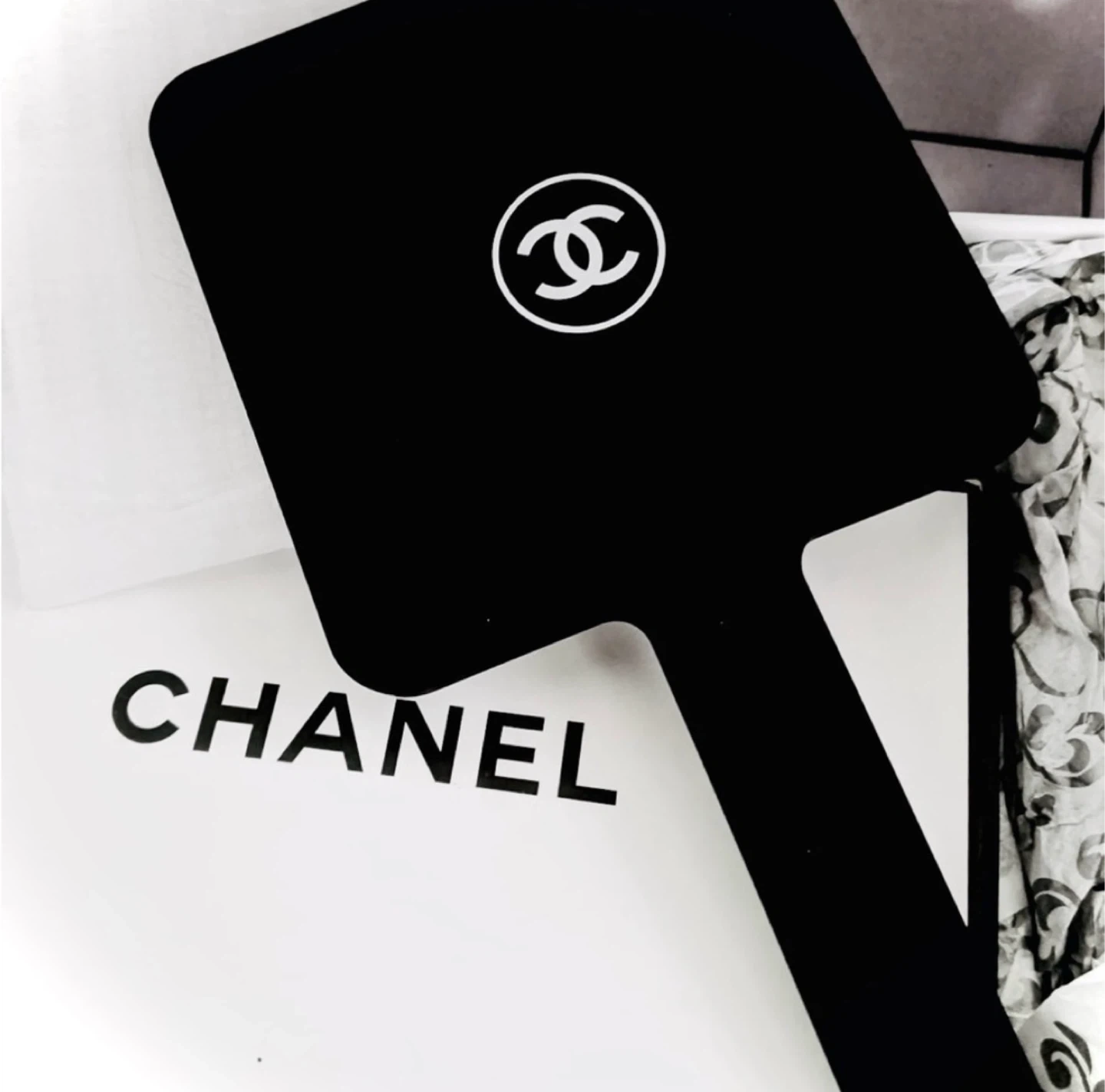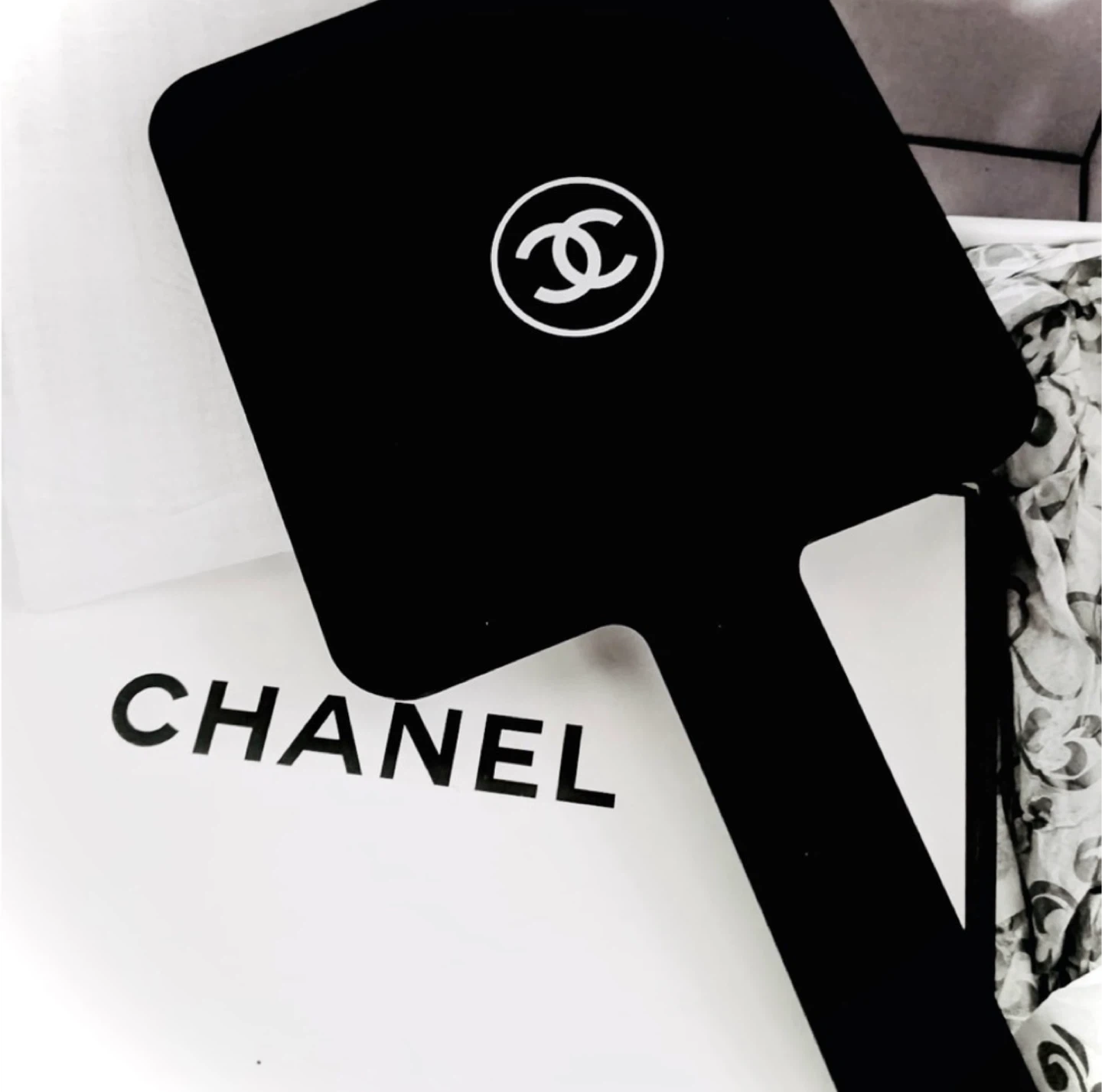 This is a VIP gift mirror, extremely rare, not available for purchase and never was, with a very limited run. You could only have received this if you spent tons of money at Chanel. Never been used. No scratches or any damages or anything like that. It’s been sitting in the box since I received it. The only times I took it out were to take pictures years ago. I don’t even think I would rest it on a surface, that’s how much I covet this.