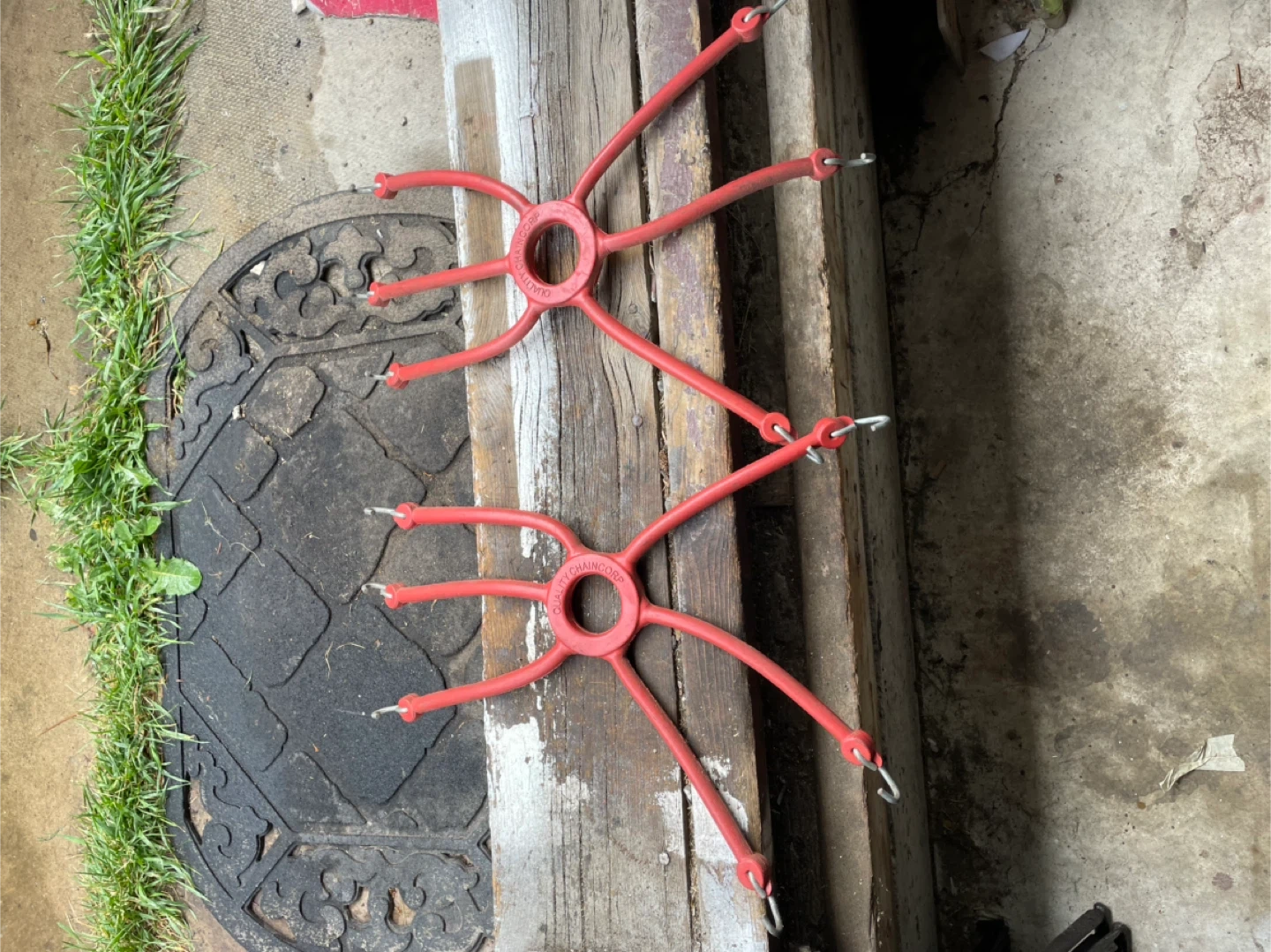 These are Qualitex Chain-Up tire chains! They appear to be in good condition and ready to help you tackle snowy roads. Perfect for winter driving!