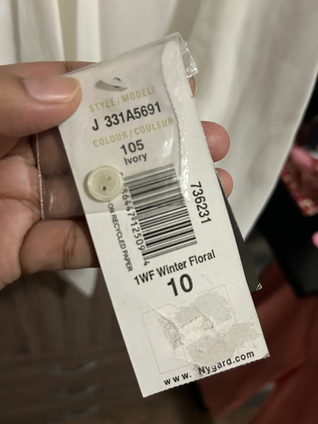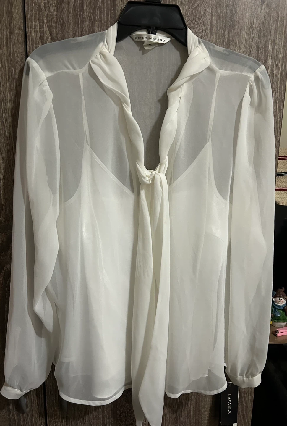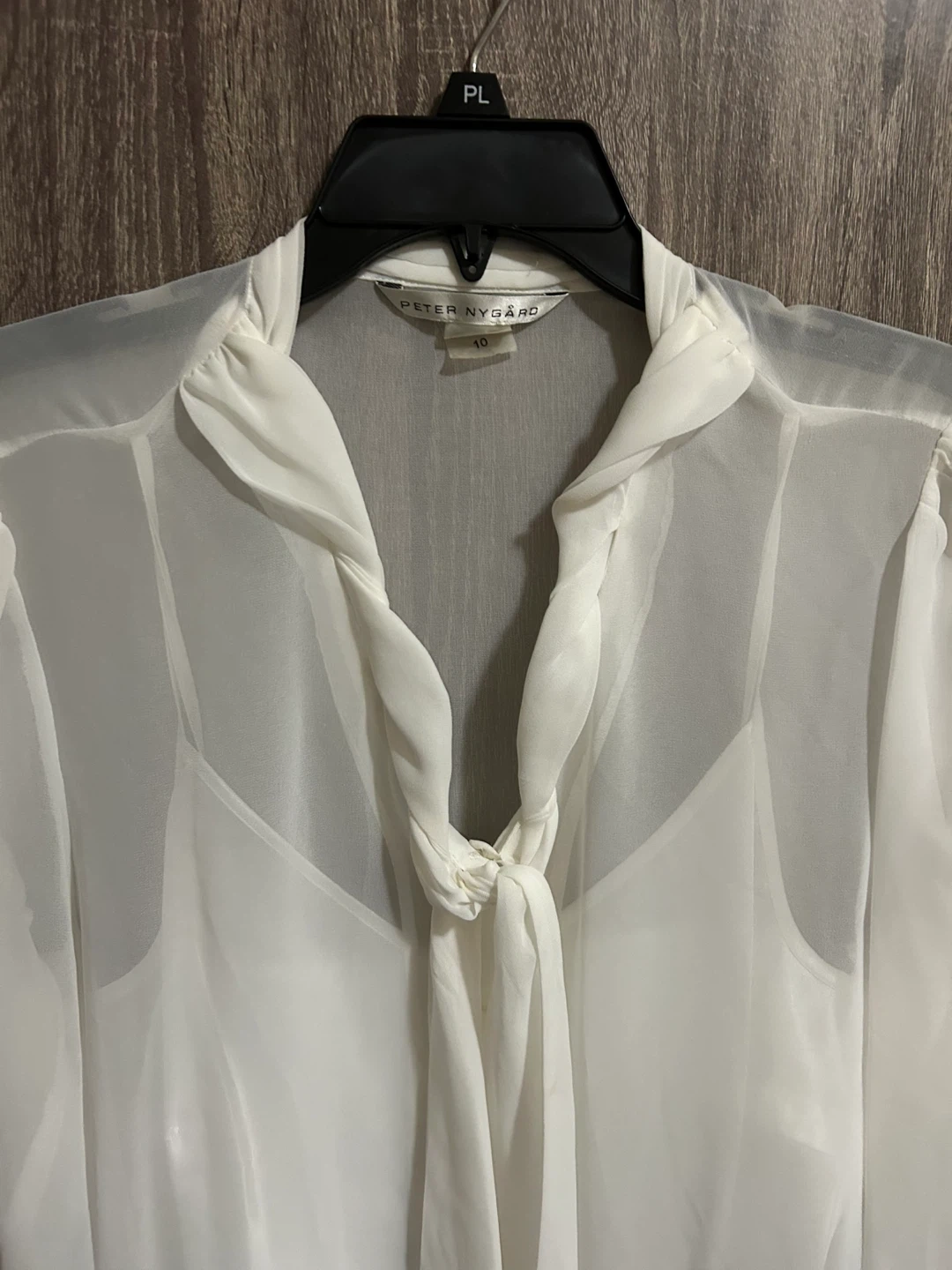 Selling a lovely Peter Nygard blouse in size 10. It's an ivory colour and has a unique twisted knot design at the neckline. Perfect for dressing up or down!