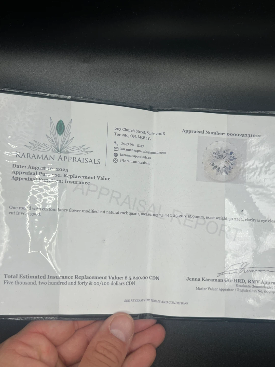 Selling a natural quartz rock with a custom fancy flower modified cut. It measures 25.44 x 25.20 x 15.90mm, with an exact weight of 50.22ct. The clarity is eye clean. Total Estimated Insurance Replacement Value: $5,240.00 CDN