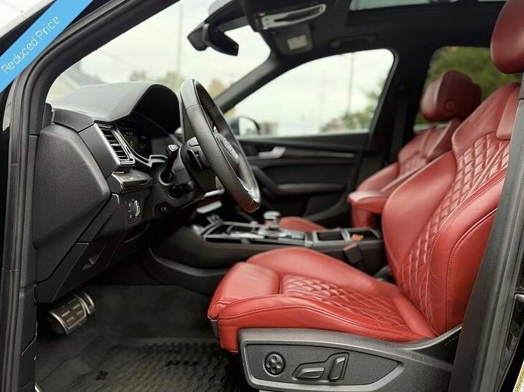 Our SQ5 Sportback's trim level is Technik 3.0 TFSI quattro. This Technik trim adds amazing tech features like a 19 speaker Bang and Olufsen 3D sound system, climate controlled cupholder, distance pacing cruise with stop and go, lane keep assist, and an aerial view 360 degree camera. A gorgeous sunroof and heated leather seats make for a luxurious experience in this SQ5. This luxury continues with a heated leather steering wheel, memory settings, and the Audi Connect infotainment system complete with navigation, wireless Apple CarPlay, Amazon Alexa, and wi-fi. Proximity keyless entry and a power liftgate provide a valet experience while this Sq5 helps you drive with Audi Pre Sense including collision avoidance assist, lane departure warning, parking sensors, and blind spot assist.