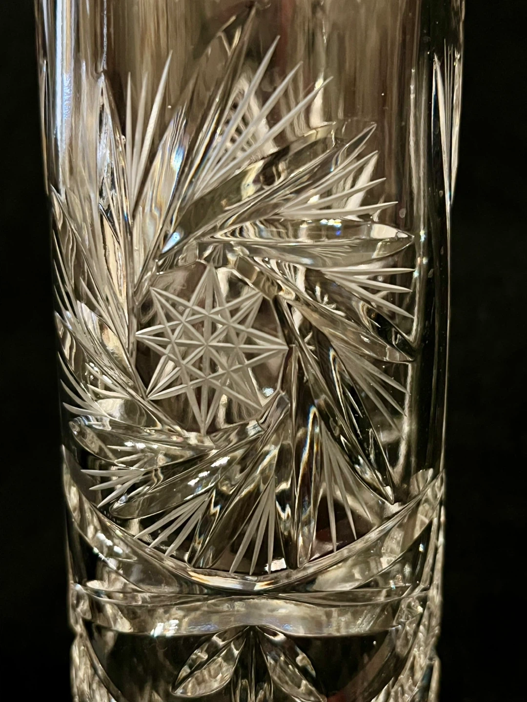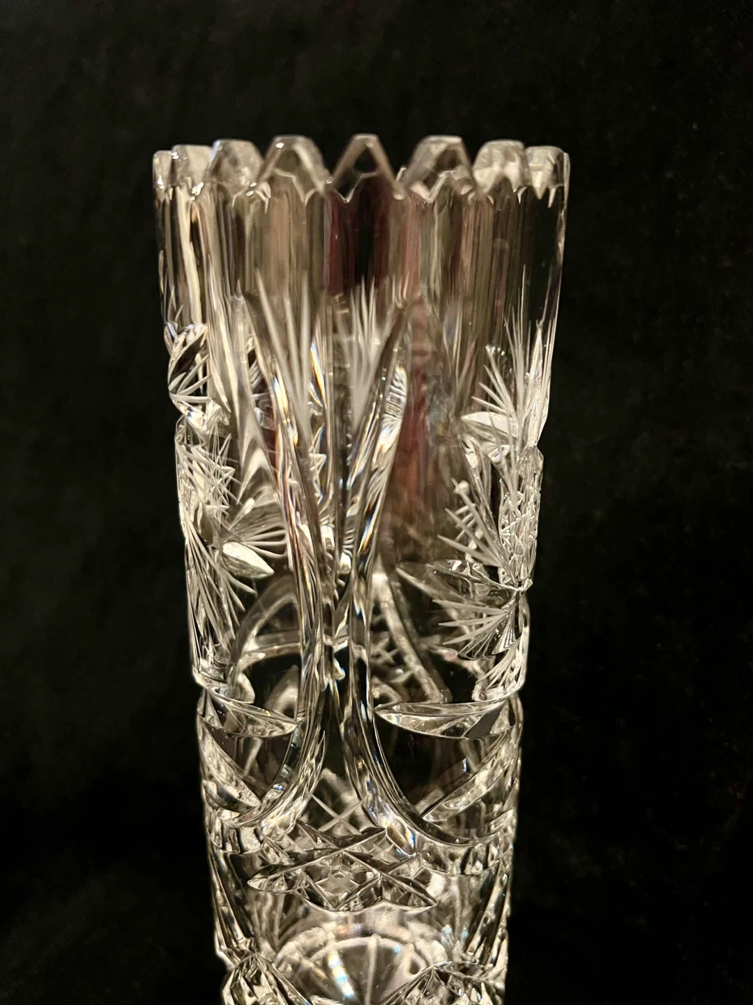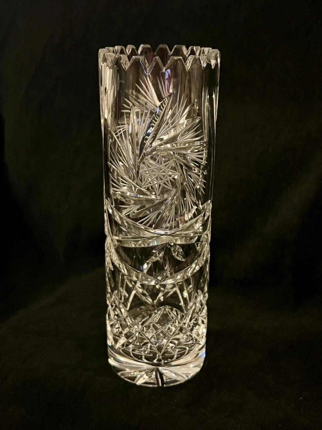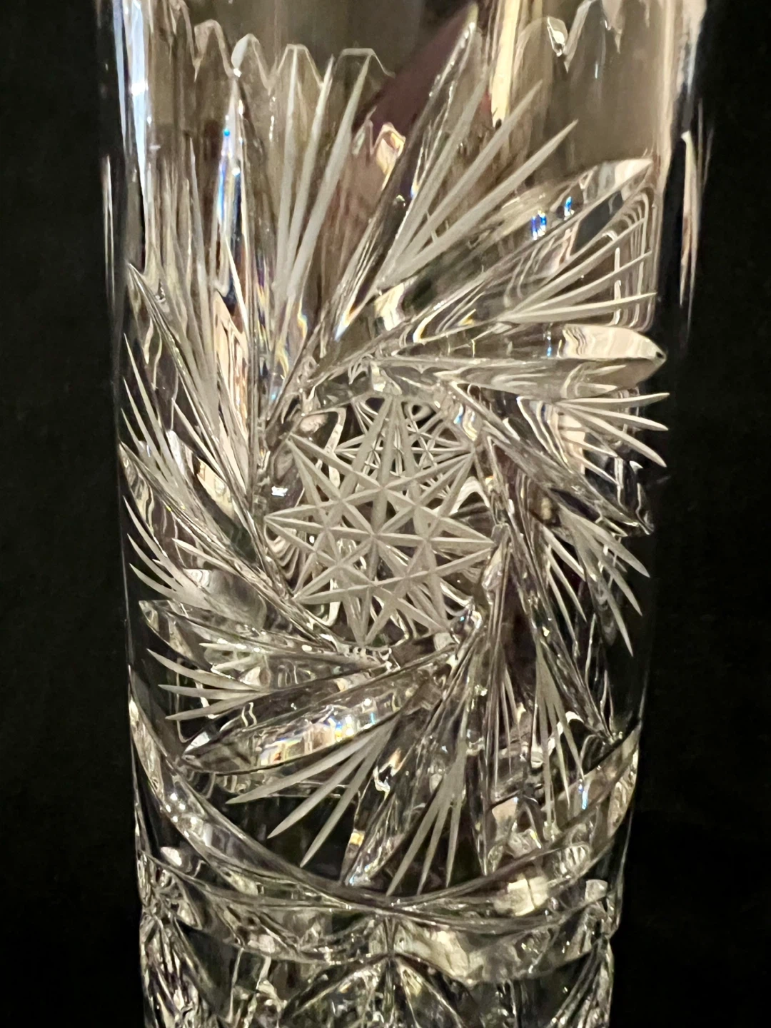 Vintage hand cut pinwheel 24% cryptal glass vase