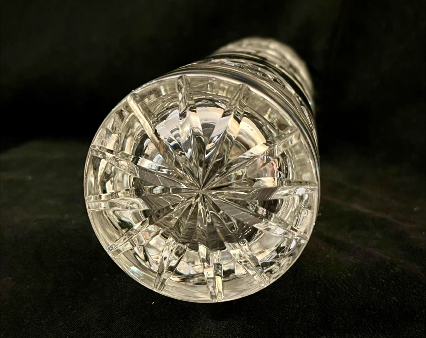 Selling a beautiful Vintage hand cut pinwheel 24% cryptal glass vase! It features a lovely starburst pattern and would look great with any decor