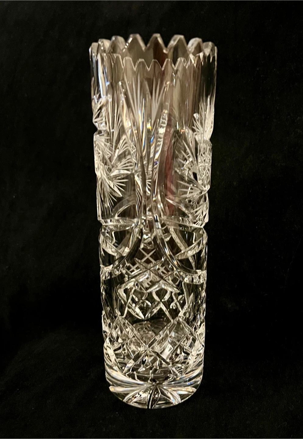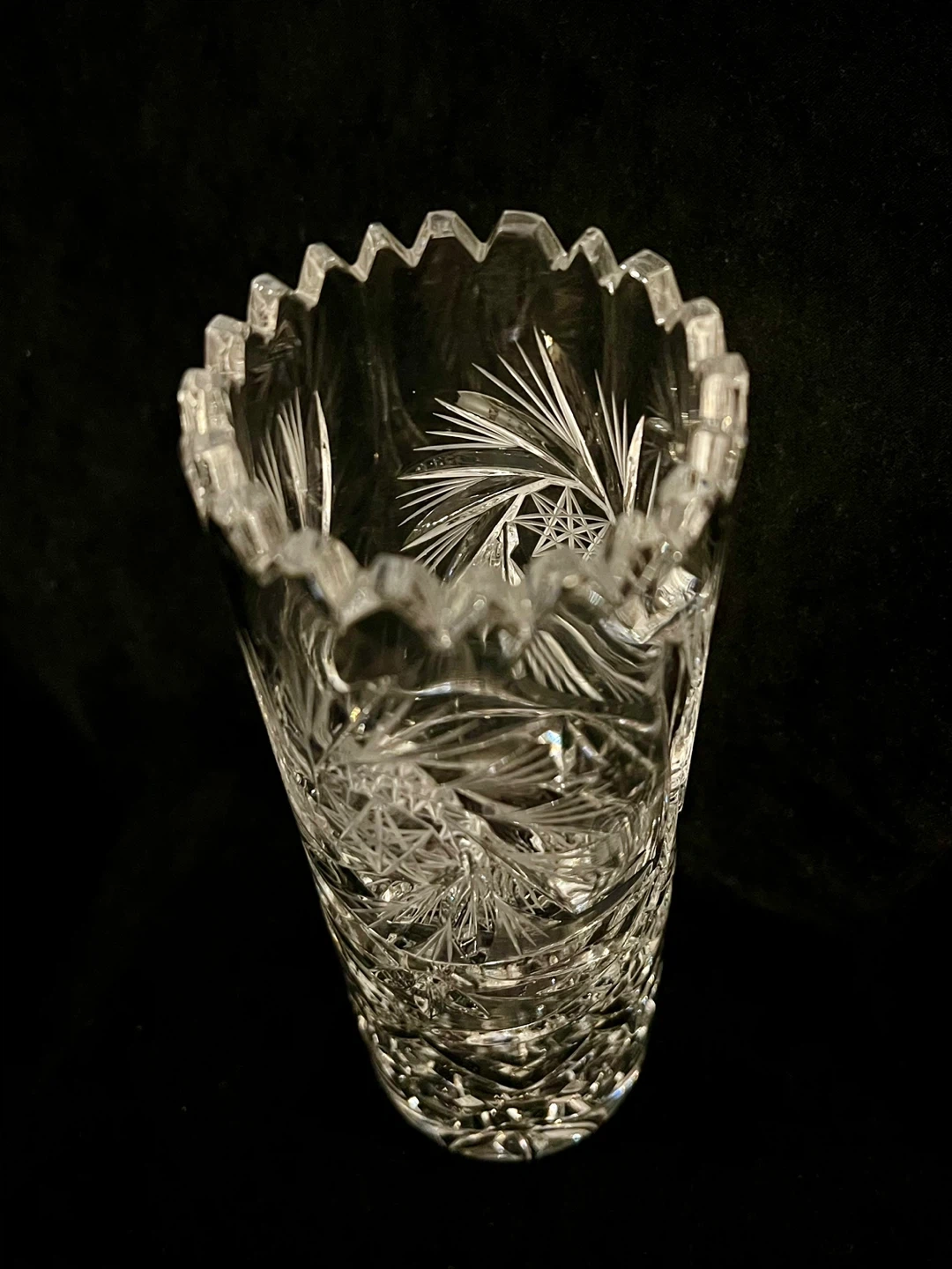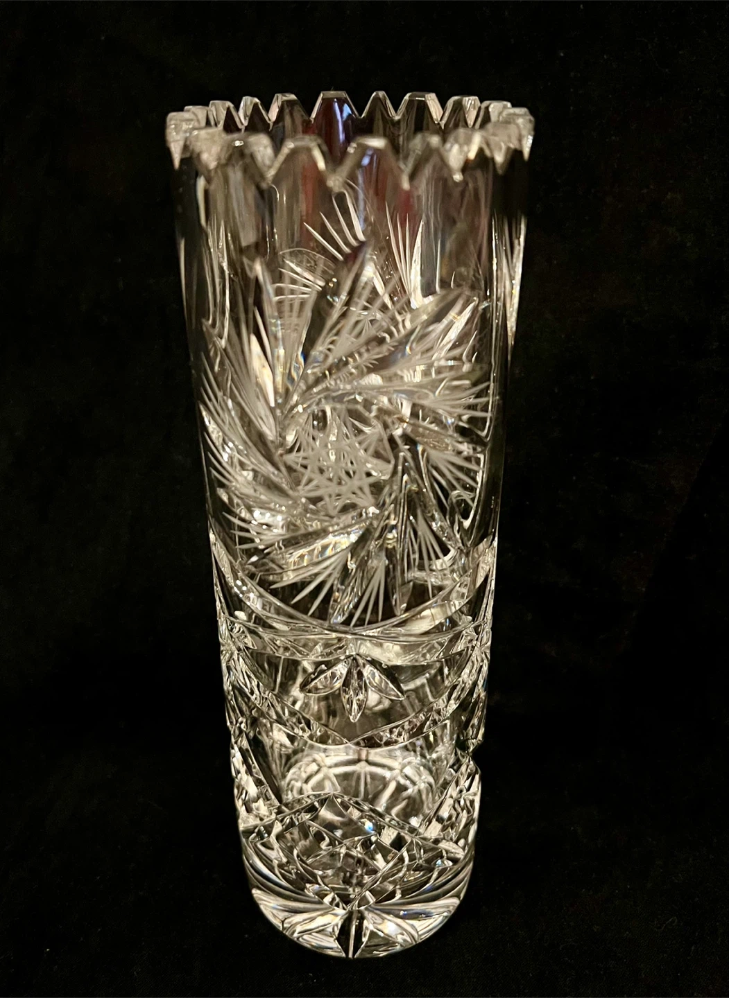Vintage hand cut pinwheel 24% cryptal glass vase