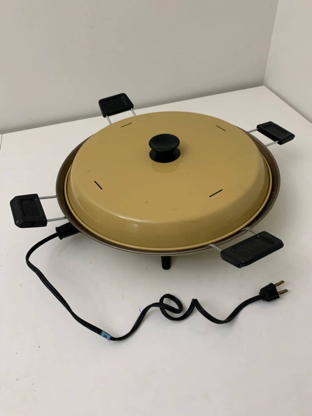 Selling a vintage raclette grill with a lid! It shows some signs of use, but it is still in good working condition. Perfect for a fun dinner with friends or family.