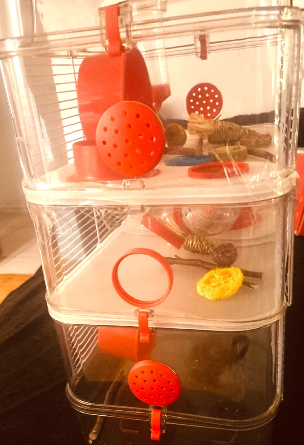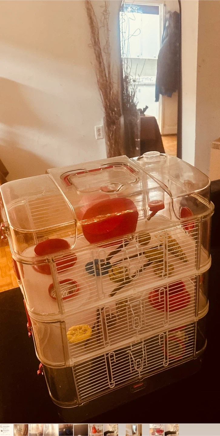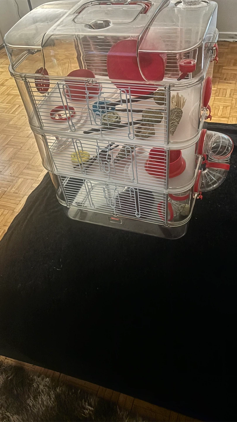 Selling a Rody.3 Trio 3 Story hamster cage! It's in great condition and ready for a new little friend. This cage is perfect for providing a fun and stimulating environment for your hamster. It features multiple levels and accessories. (Never been used)