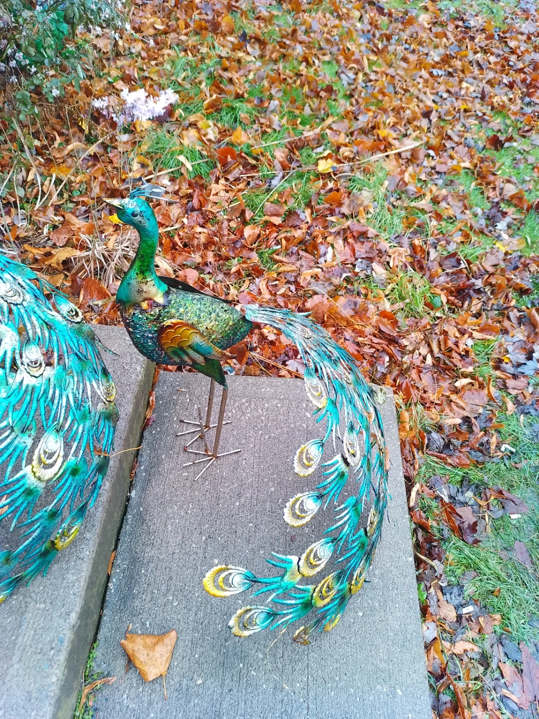 These vibrant metal peacock garden decorations are sure to add a pop of colour to your outdoor space! They're in great condition and ready to brighten up your garden or patio