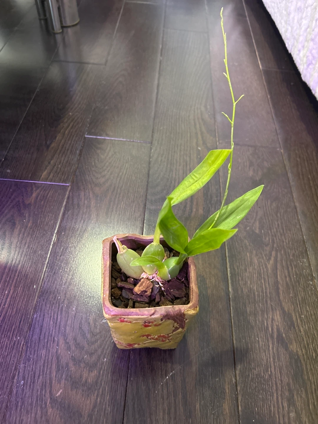 Oncidium orchid: fragrant pink flowers and currently with a flower spike