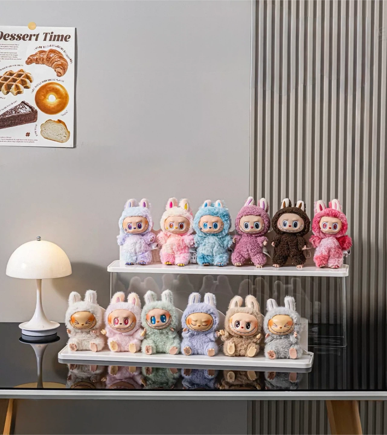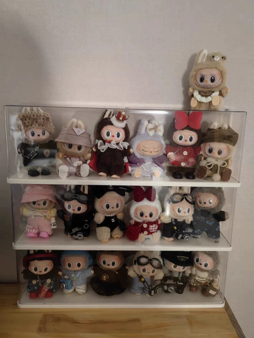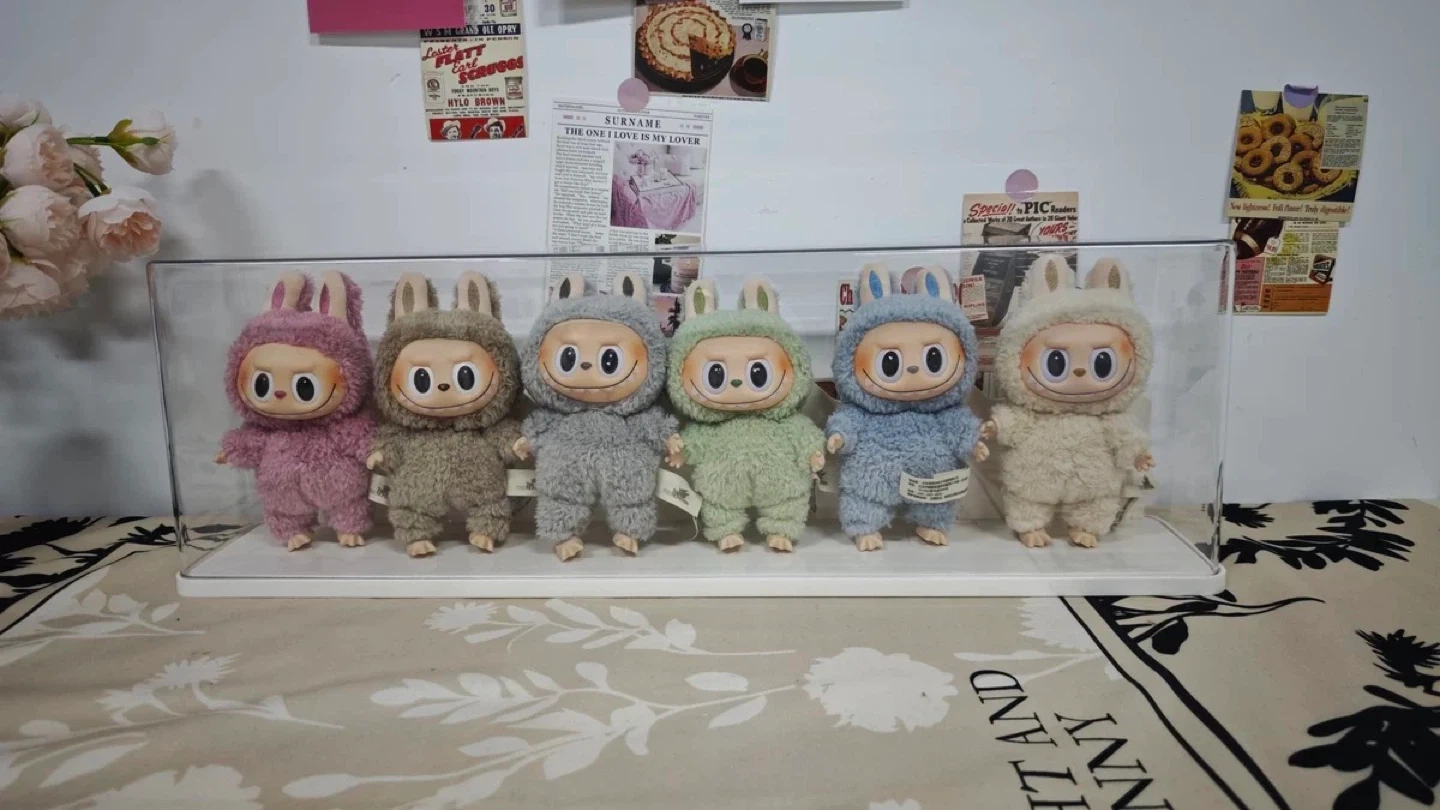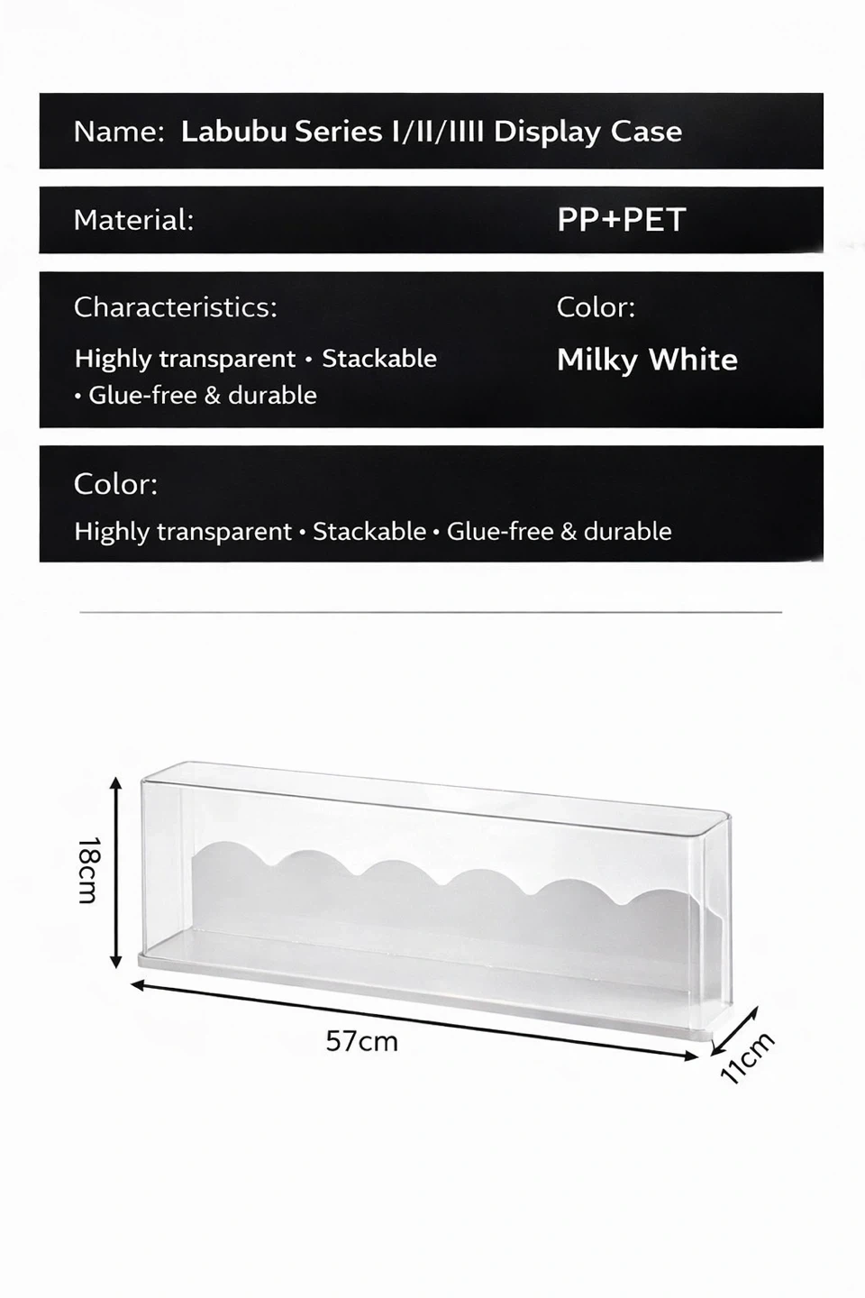 Selling a Labubu Series I/II/IIII Display Case in milky white! It's made of PP+PET material and is highly transparent. It's also stackable, glue-free, and durable. The dimensions are 57cm x 11cm x 18cm