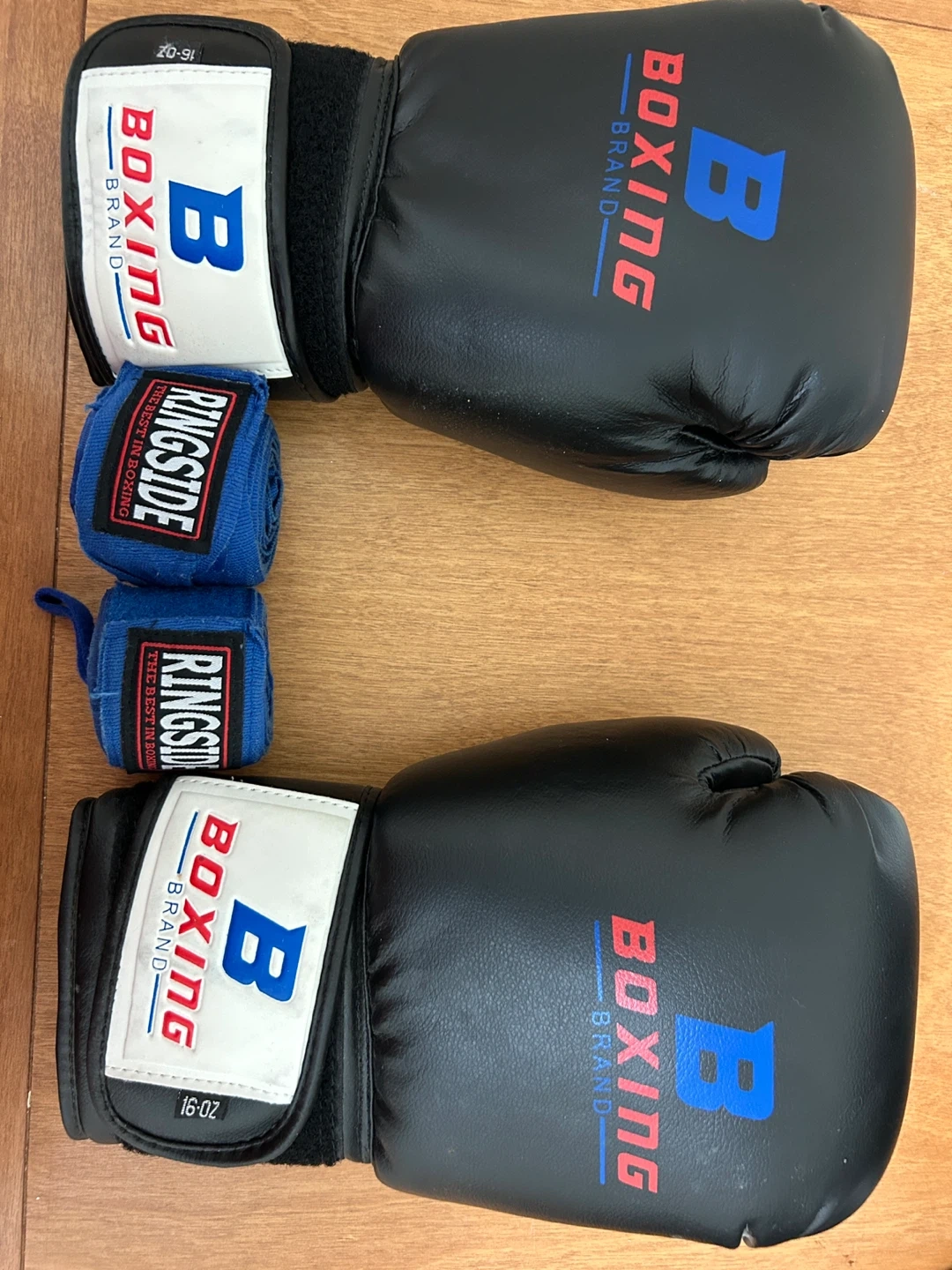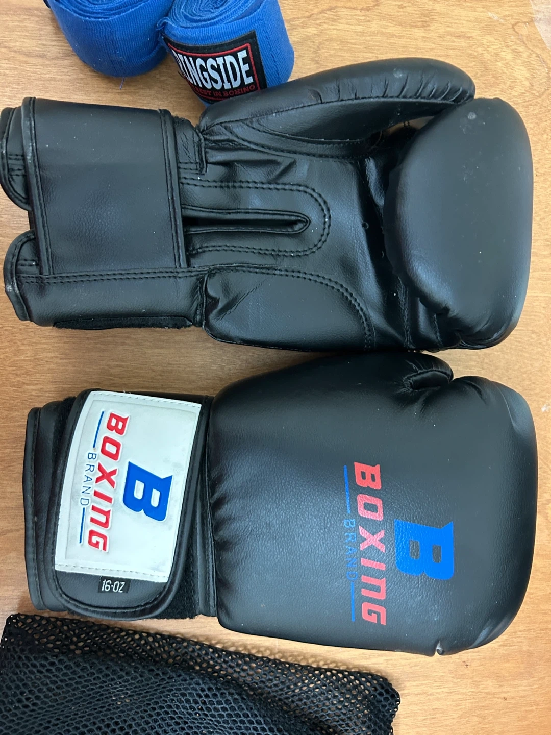 Selling a pair of Boxing Brand 16-oz boxing gloves in good condition. They come with Ringside boxing wraps and a Northern Fight Co mesh bag to keep everything together. Great for anyone getting into boxing or looking to upgrade their gear!