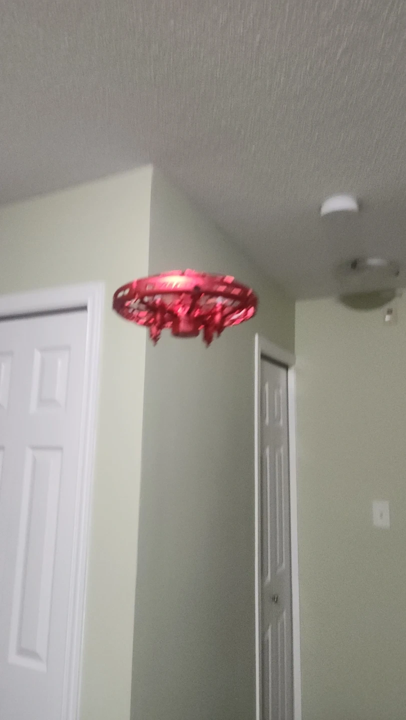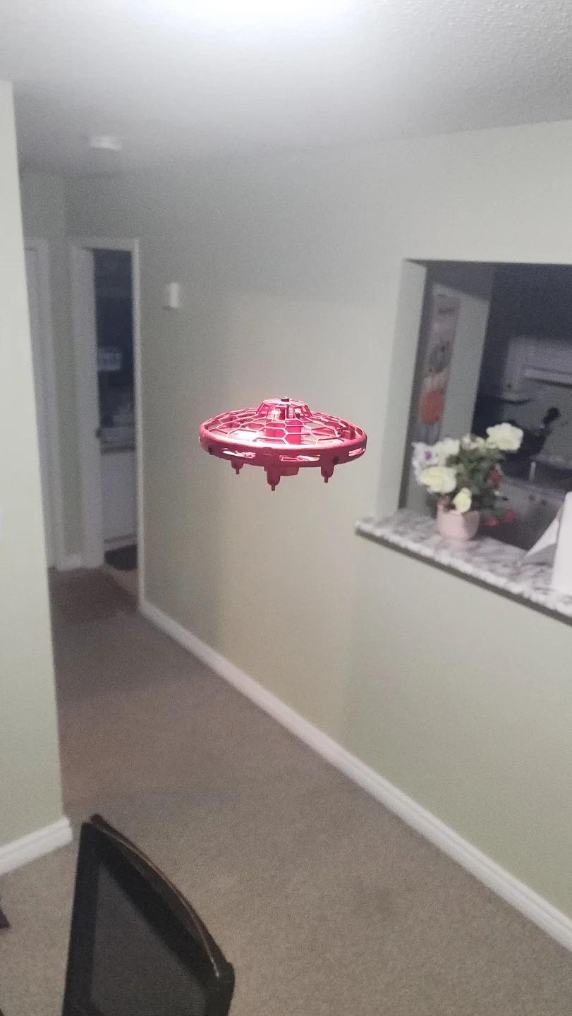 Check out this fun red flying UFO induction toy! It's a cool little gadget that flies around and is sure to provide some entertainment. It comes with a charger so you can keep the fun going!