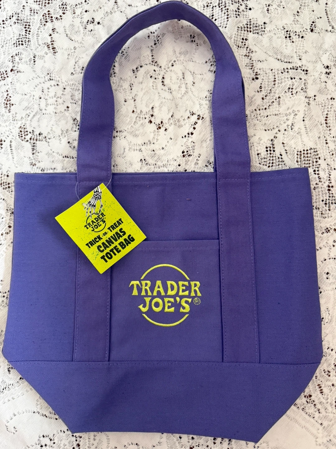 ❣️❣️The Halloween "Trick or Treat" note applies only to the DETACHABLE PAPER TAG, meaning the bag is perfect for year-round use-for groceries, books, lunch, or a purse!
