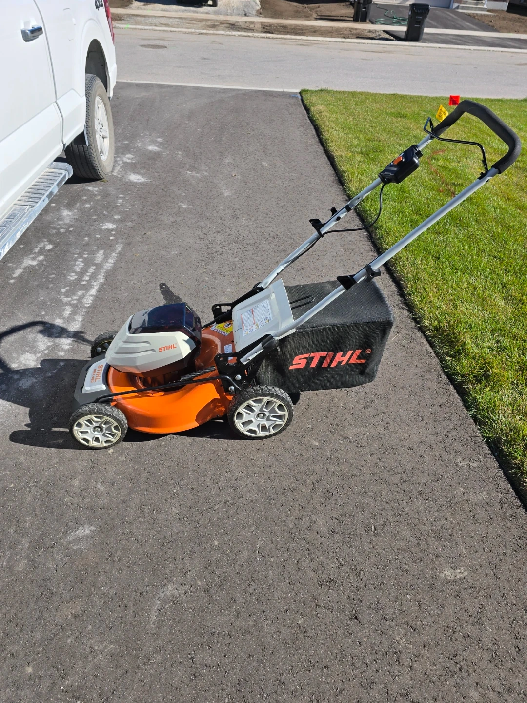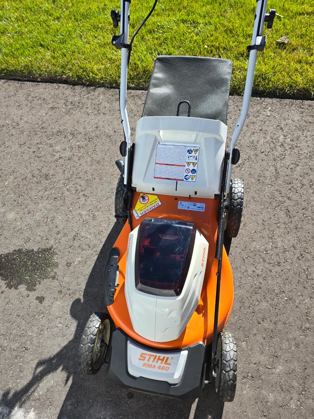 This Stihl RMA 460 is a battery-powered lawn mower with two batteries and a charger, making it a convenient and eco-friendly option for lawn care. This mower has been well-maintained and is in perfect working condition.