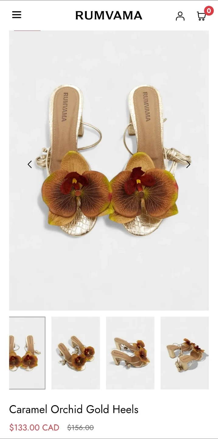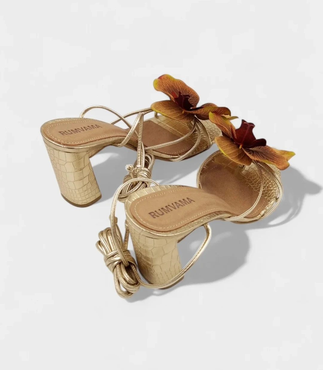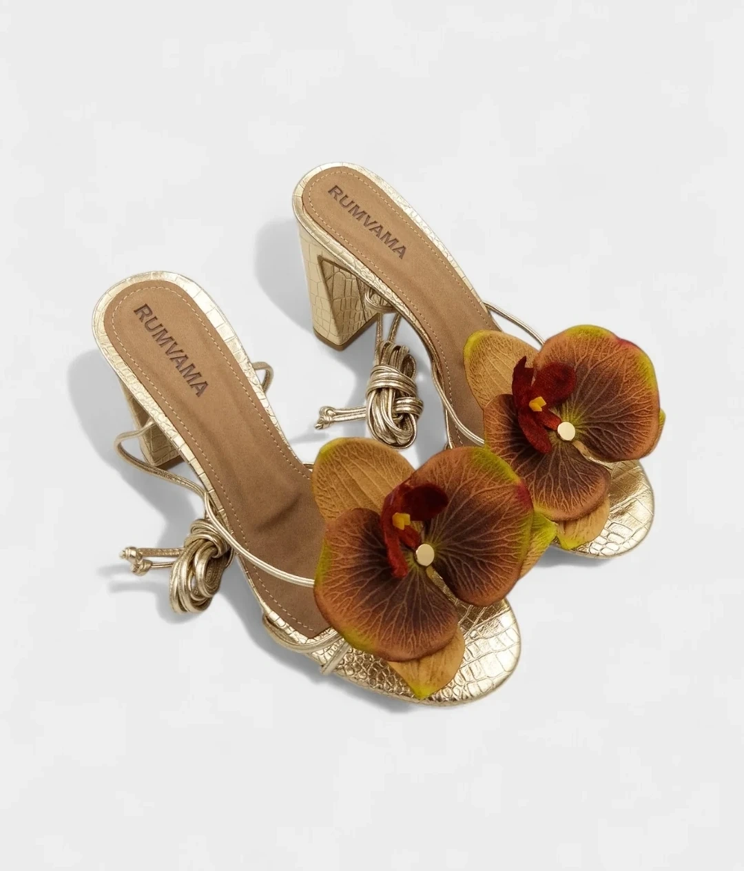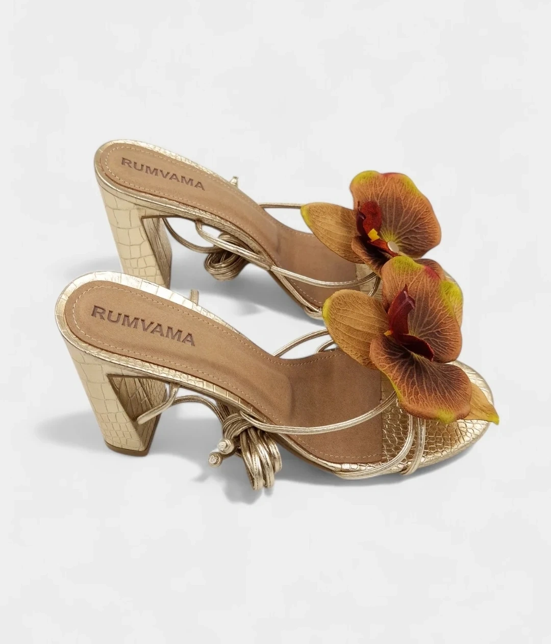 RUMVAMA Caramel Orchid Gold Heels (Size 7) - NEW!!!
