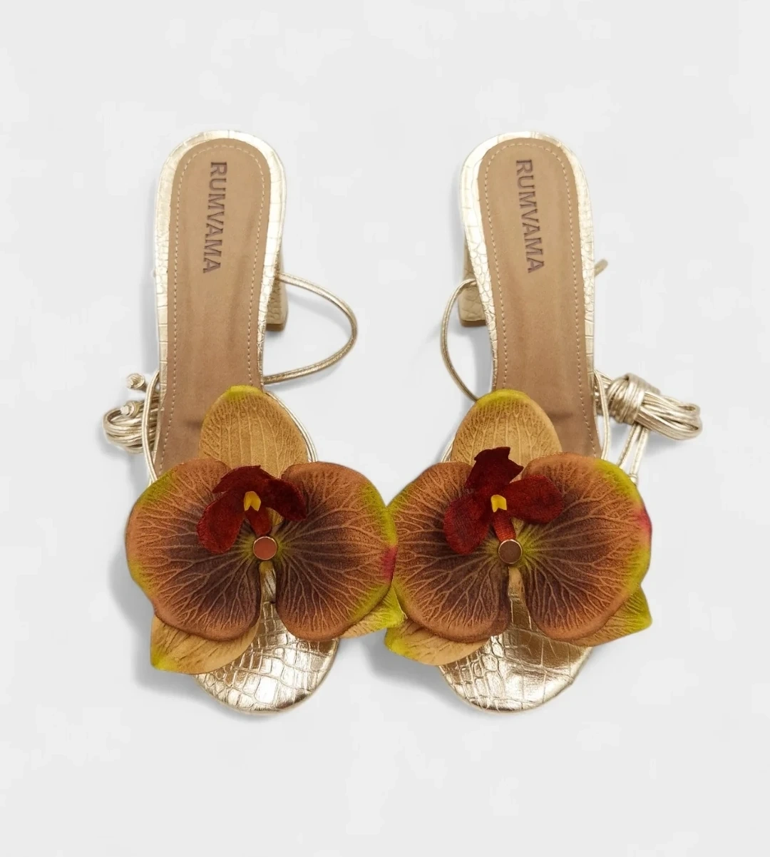 RUMVAMA Caramel Orchid Gold Heels (Size 7) - NEW!!!