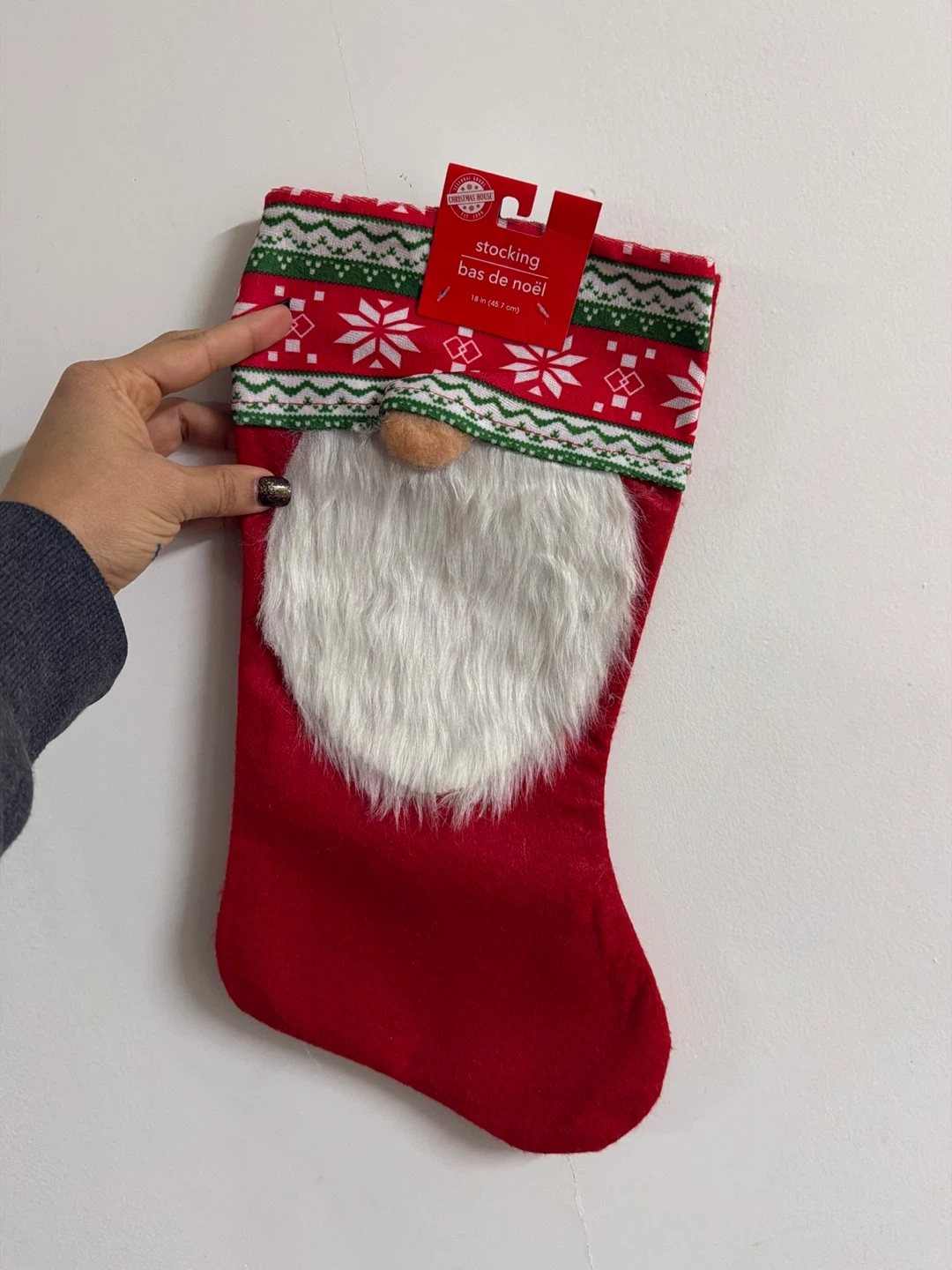 Check out this adorable Christmas House stocking! It features a cute gnome design with a fluffy white beard and a festive red and white patterned top. It measures 18 inches (45.7 cm) tall. Brand new with tags!
