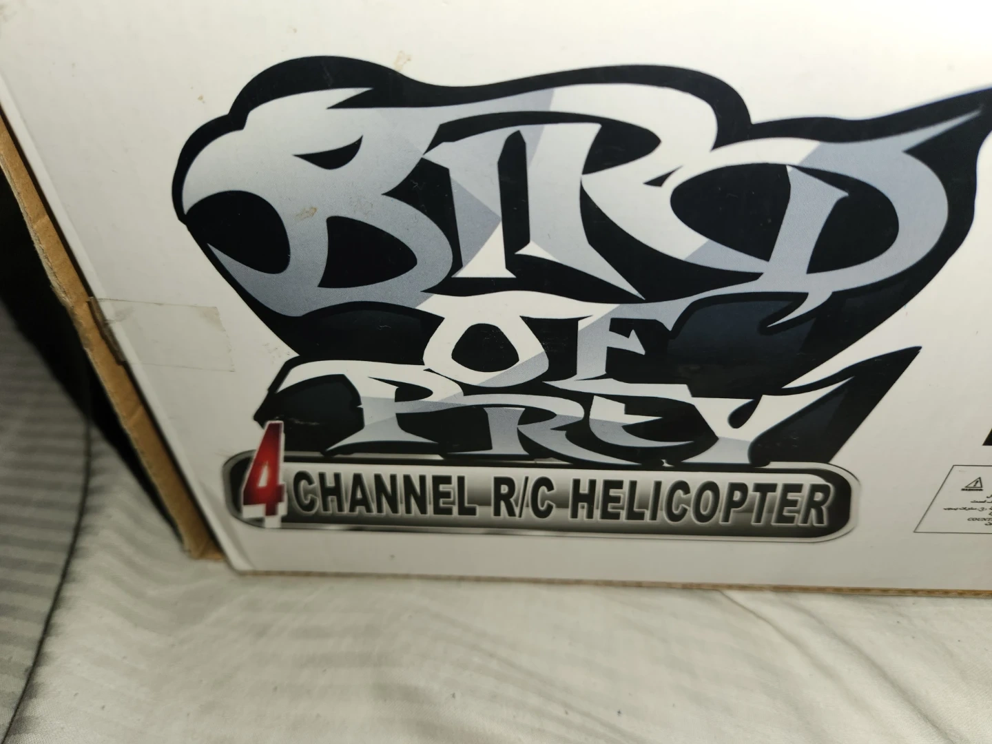 New .LUCKY BOY..Bird of prey high speed strong action. 4 channel R/C helicopter..ages 14 and up...upward/downward stop.forward/reverse..right, left, parallel..