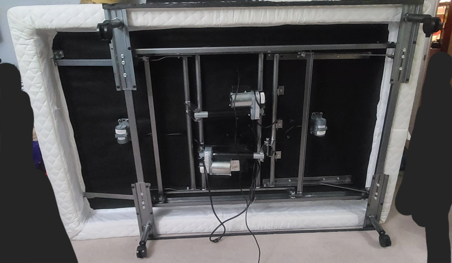 Full size, Invacare heavy duty adjustable bed, wireless, independent controller for top and bottom (remote need new batteries). Also independent vibration on top and bottom. Originally bought used for 4,000$. Comes with Seally Mattress super comfy med-firm. It is heavy so you'll need a partner, wheels will be helpful. Couple of corners of the box spring have been slightly scratch as you can see on the picture, tape was put over it as protection. Cash only.
