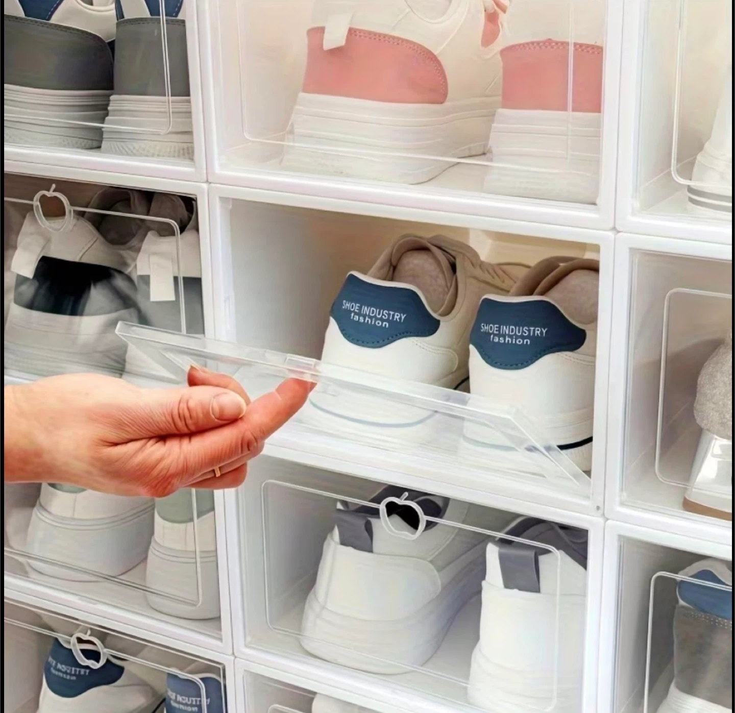 Keep your shoes neat and tidy with these stackable storage boxes! These clear front boxes make it easy to see your shoe collection while keeping them dustproof. Dimensions are mentioned in the pictures. It’s brand new in box.