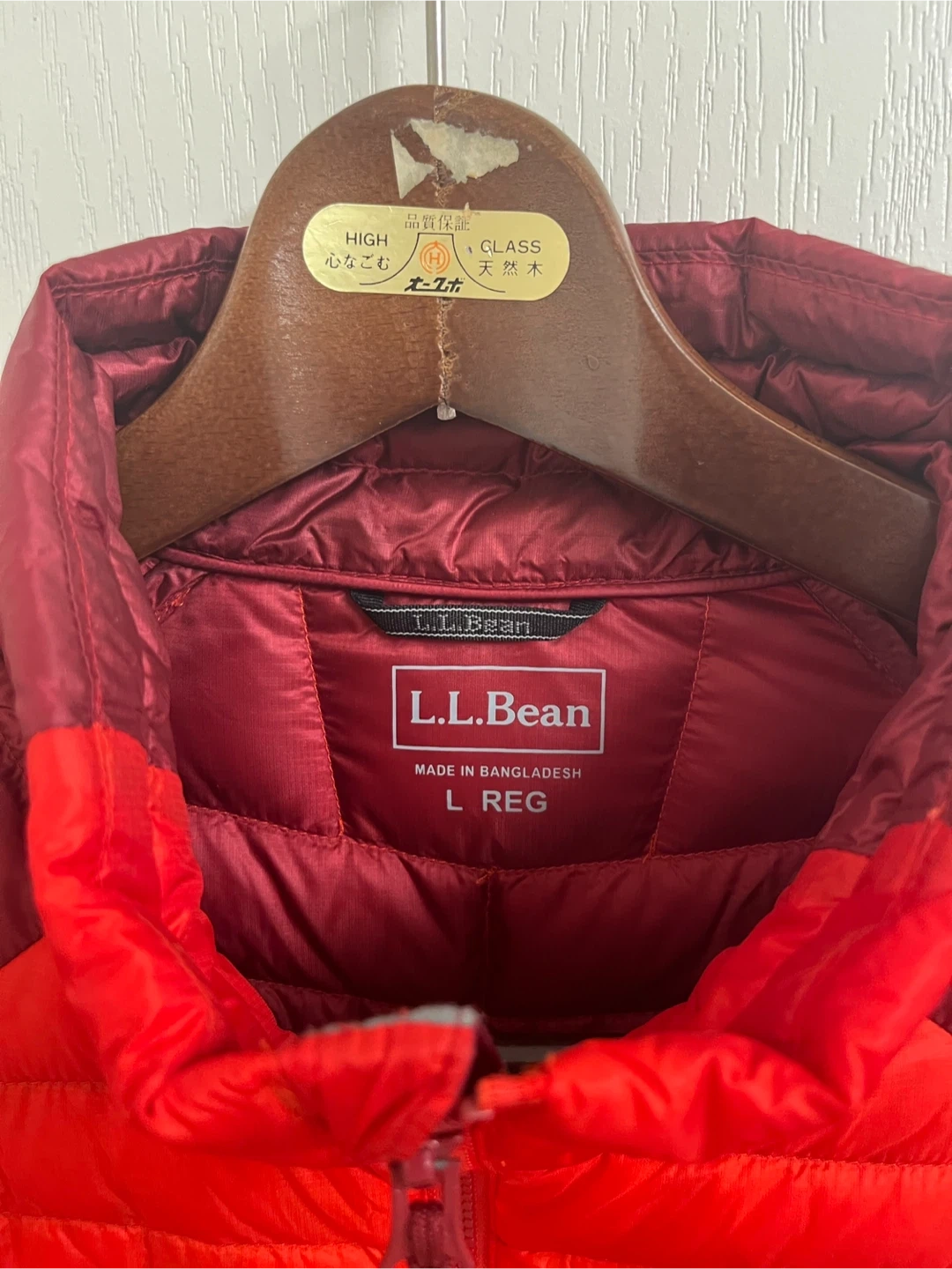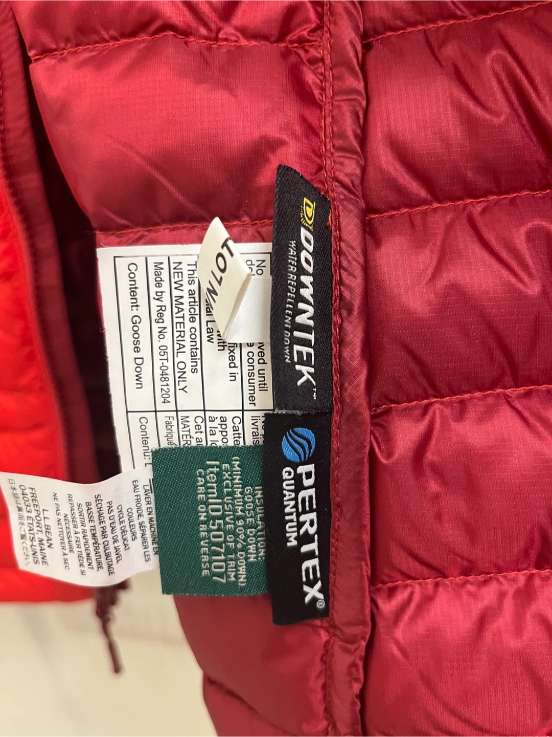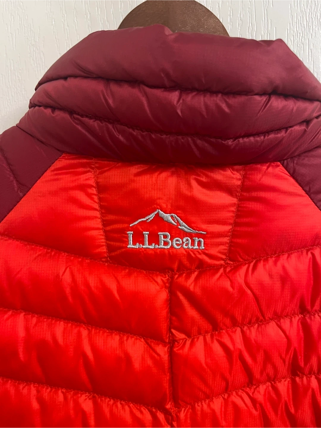 Selling a L.L.Bean Ultralight 850 Down Jacket in size L. It's a stylish and warm jacket, perfect for the Canadian weather! The jacket features a red and burgundy colour scheme. It is made in Bangladesh.