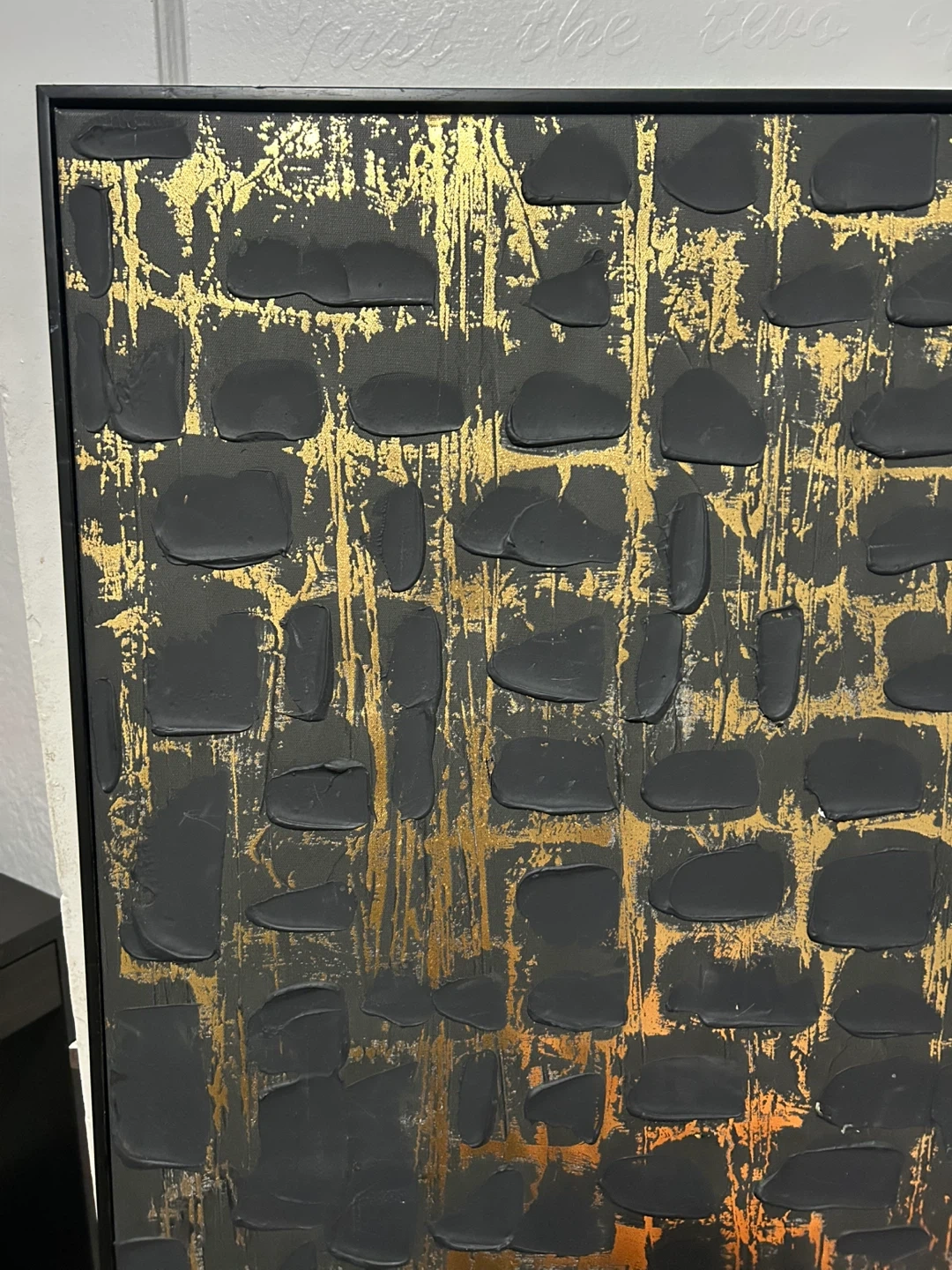 Selling a striking piece of abstract wall art with a black and gold colour scheme. It's a great statement piece to add some texture and visual interest to your space
