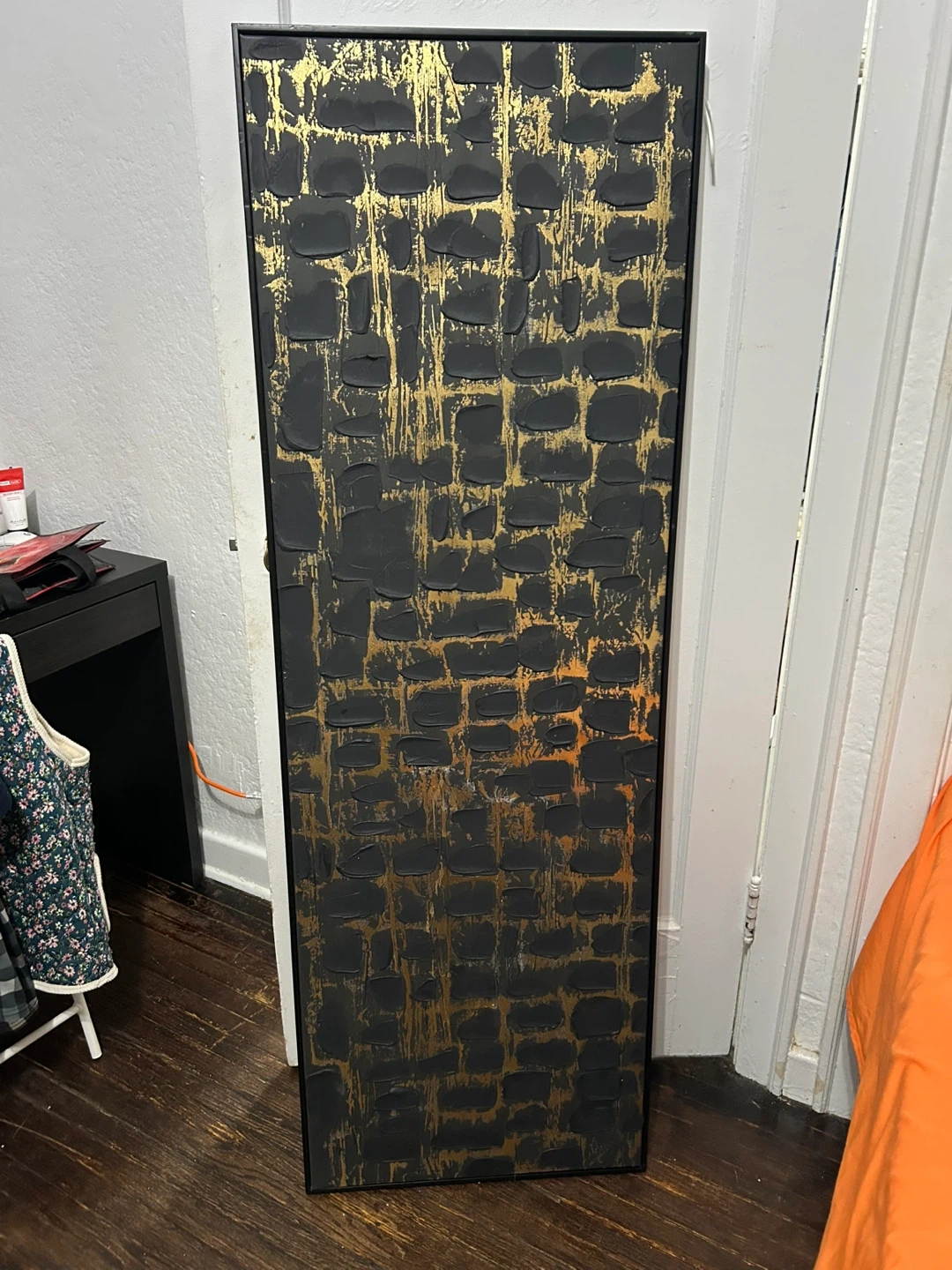 Selling a striking piece of abstract wall art with a black and gold colour scheme. It's a great statement piece to add some texture and visual interest to your space