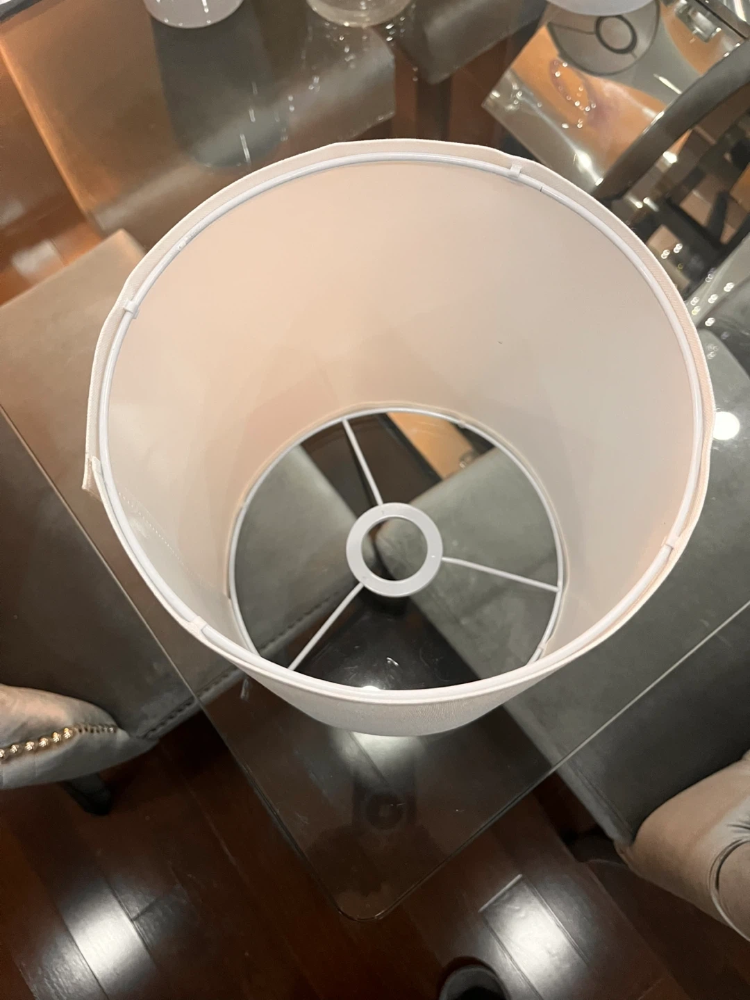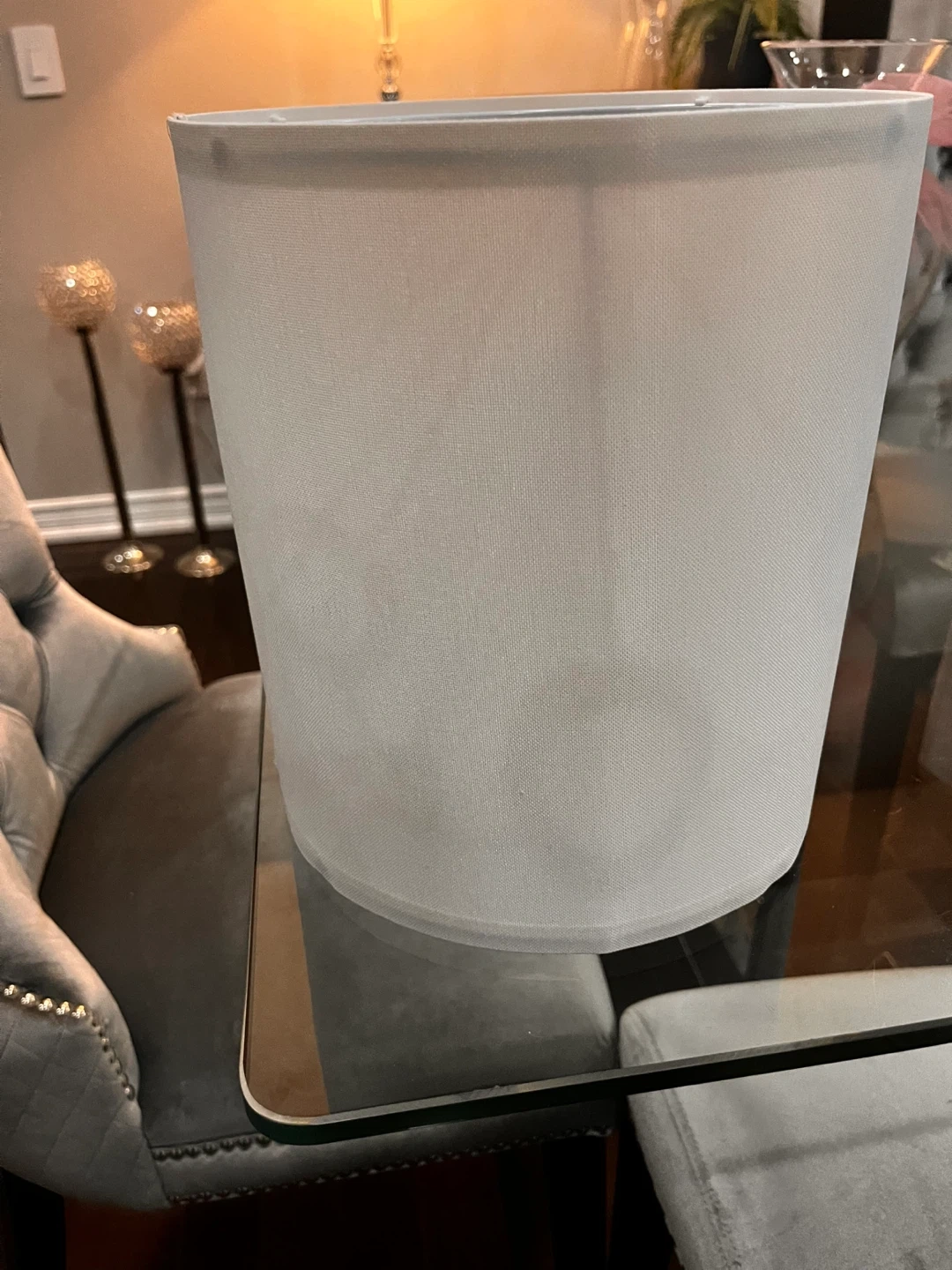 Selling a white lamp shade in excellent condition. It's a simple and clean design that would fit well in any room. Perfect for adding a touch of elegance to your lighting