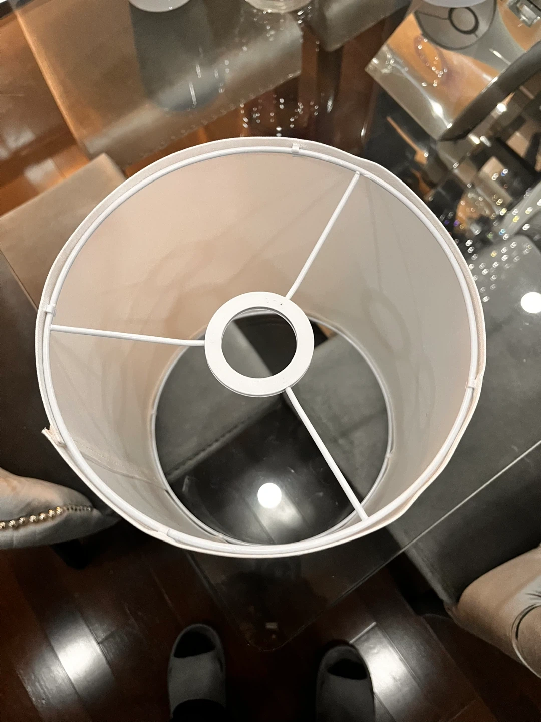 Selling a white lamp shade in excellent condition. It's a simple and clean design that would fit well in any room. Perfect for adding a touch of elegance to your lighting