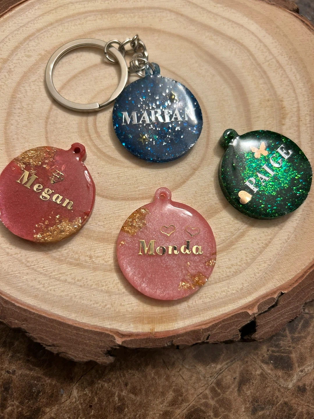 I have some cute, handmade resin keychains available. Each one is personalized with a different names. They're all unique and would make a lovely addition to your keys or bag!