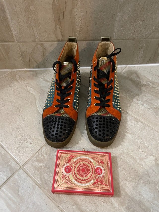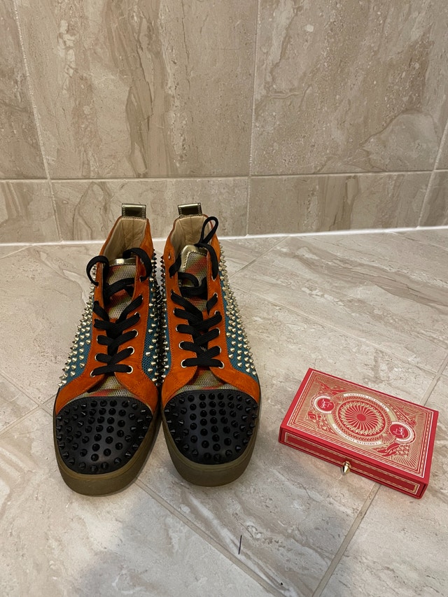 Selling My Red bottom sneakers with VIP playing cards this set was purchased for over 2,000 almost 10 years ago they are still in great condition with some minor scuffs. shoes=550 cards=150 if you want to buy separately