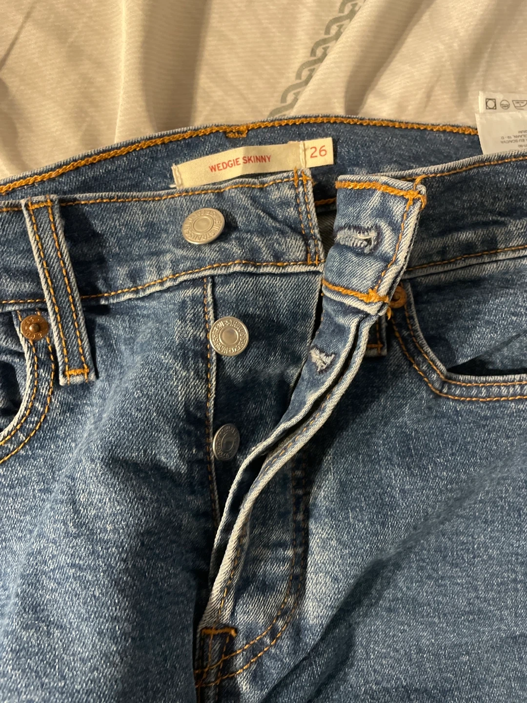 Levi's Wedgie Skinny jeans in size 26 are up for grabs! These jeans are in great condition and ready for a new owner. They're a stylish and comfortable choice for everyday wear.