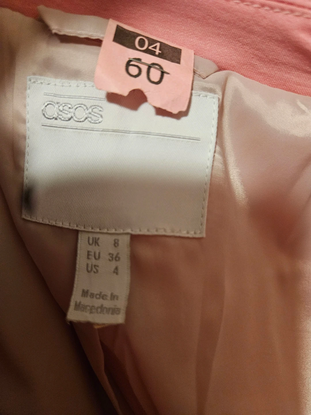 I'm selling a cute pink blazer from ASOS! It's a US size 4 and in great condition. Perfect for adding a pop of color to your wardrobe. It's made in Macedonia.