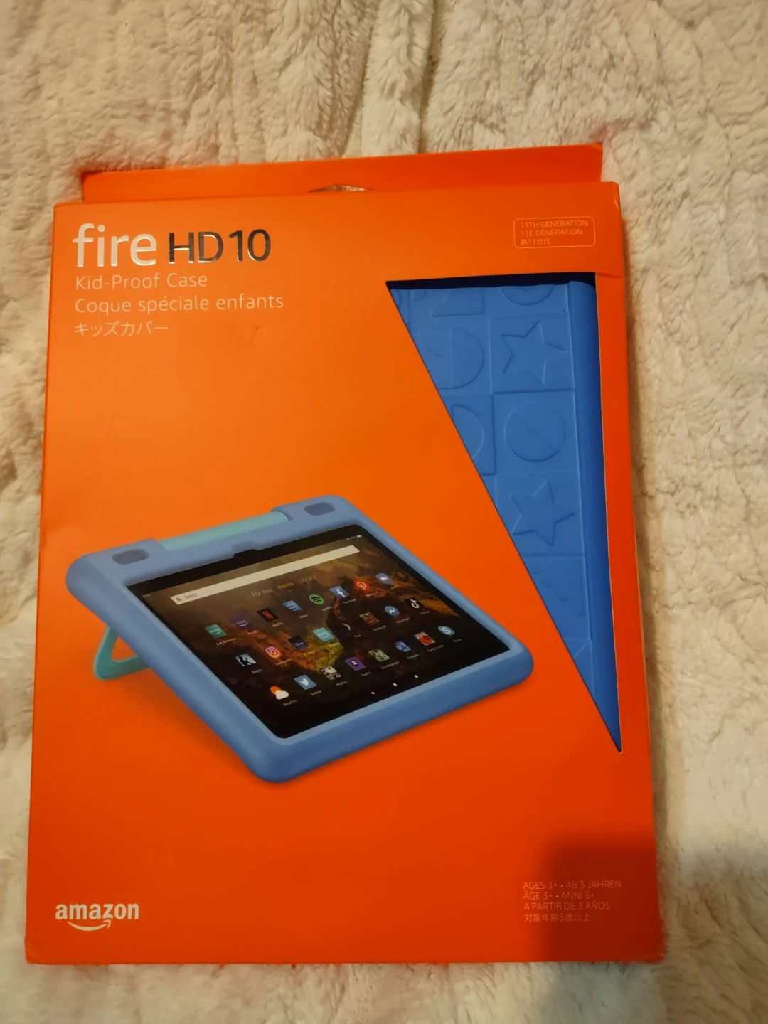 Selling a brand new Amazon Fire HD 10 Kids - proof table case in blue! . Fits Fire HD ( 11th generation )only. It's designed with kids in mind and provides protection against drops. Easy access to buttons, ports, and cameras