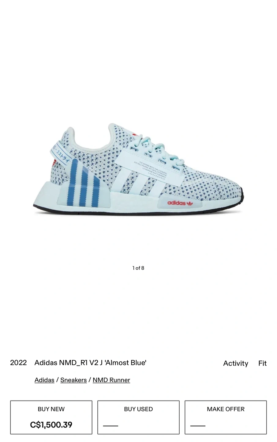 Selling a pair of Adidas NMD_R1 V2 J 'Almost Blue' sneakers. These are a stylish and comfortable shoe, perfect for everyday wear. Check out the photos for a closer look!