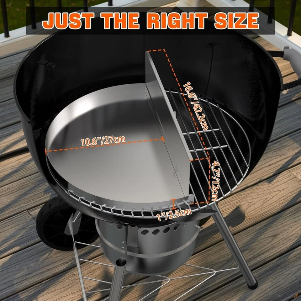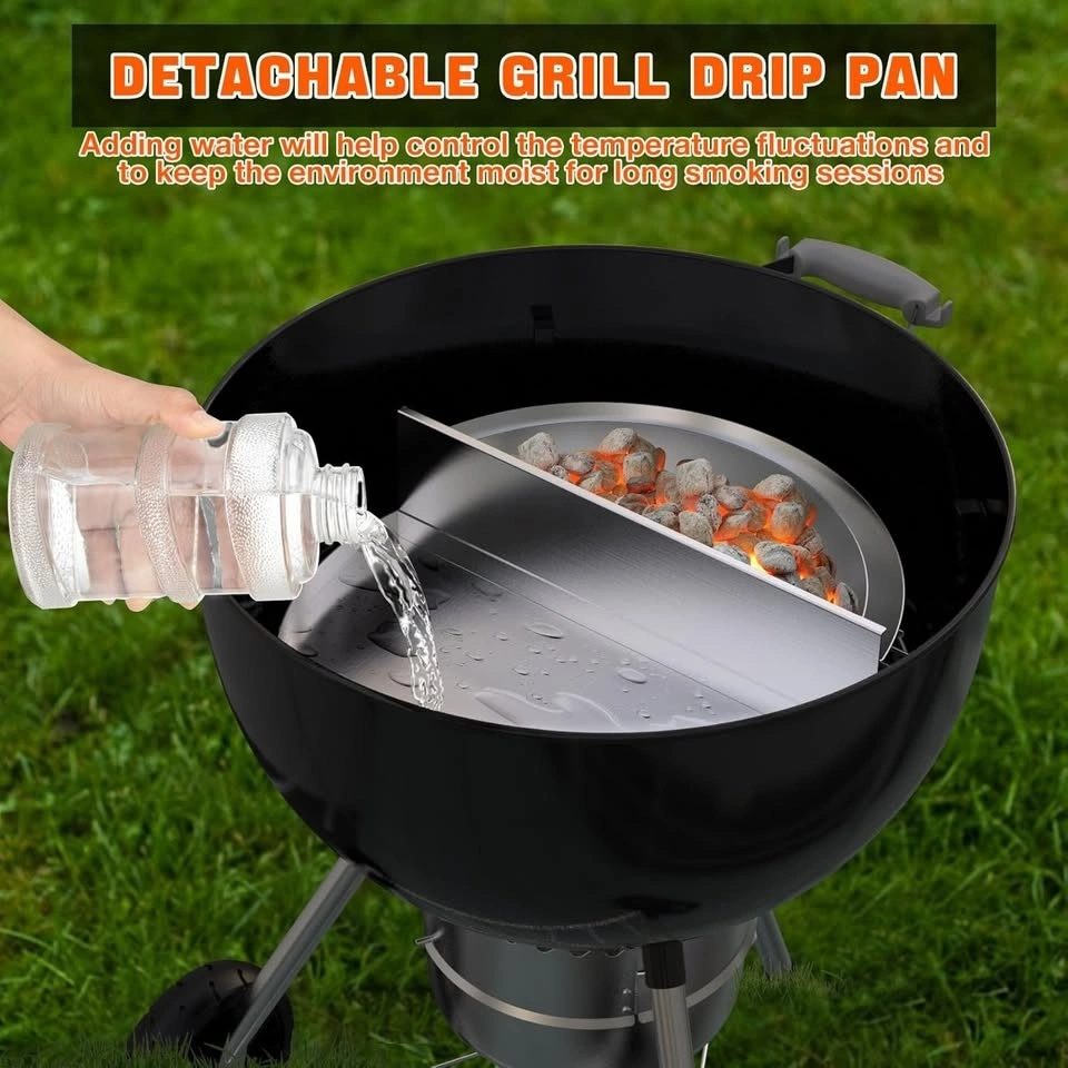 High-quality stainless steel drip pan & charcoal divider designed for Weber 22" kettle grills. Perfect for keeping your grill clean, controlling grease, and creating two cooking zones for low-and-slow BBQ. Also helps stabilize temperature and improves charcoal burn efficiency.