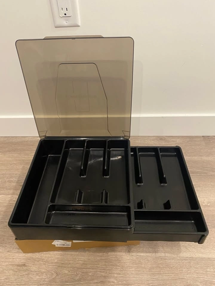Double Layer Silverware Tray with Lid, Black