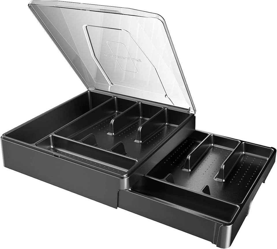 Double Layer Silverware Tray with Lid, Black