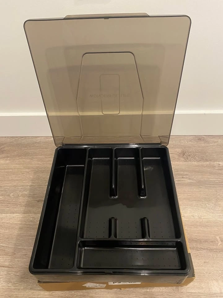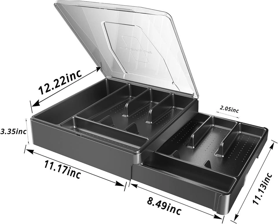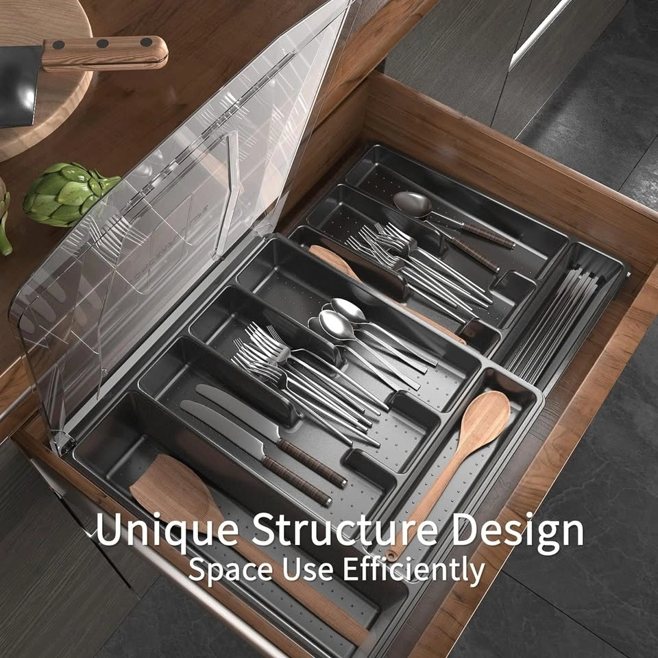 Keep your kitchen organized with this double-layer silverware tray featuring a protective lid.