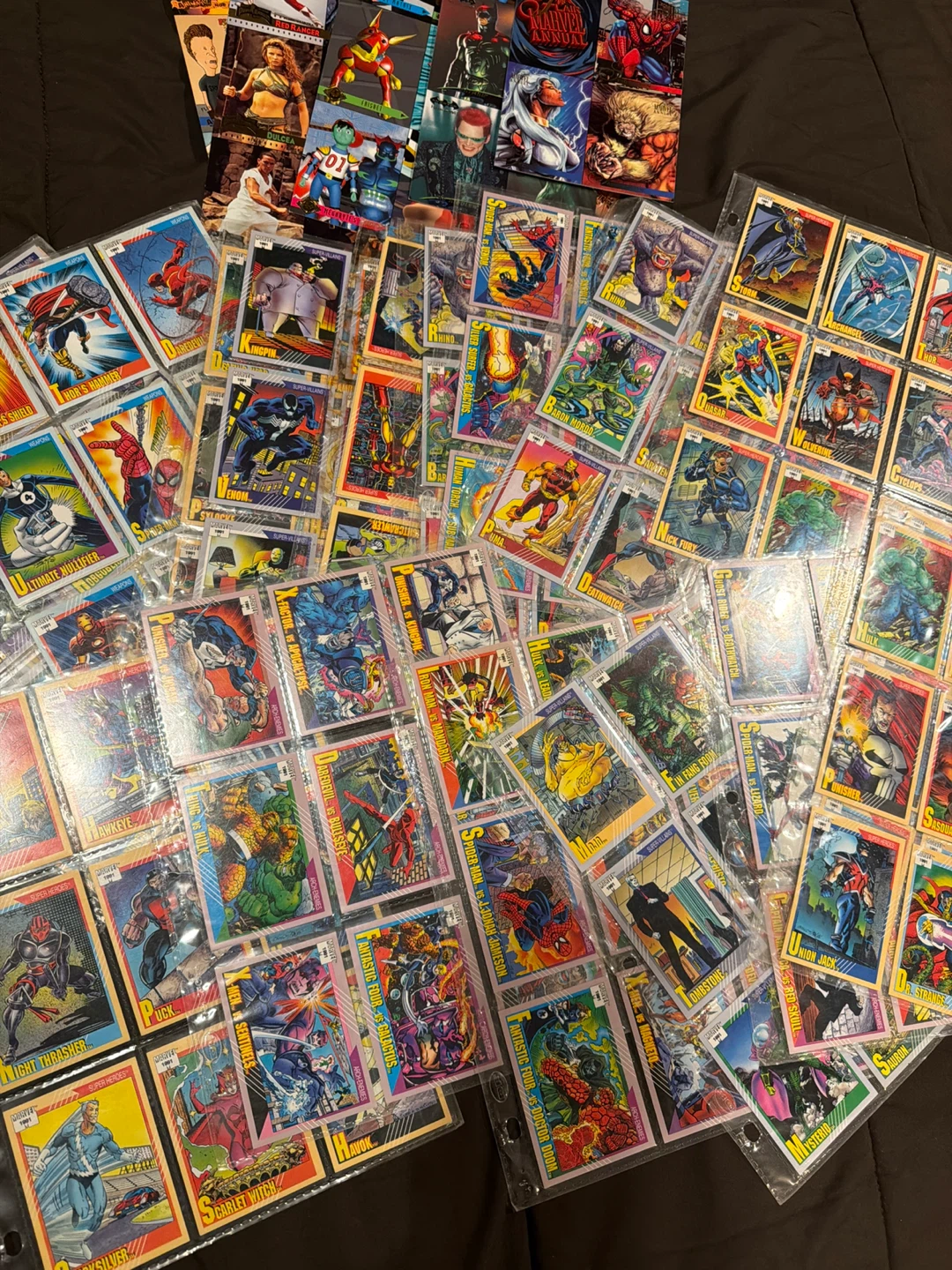 Selling a collection of Marvel trading cards! There are a variety of characters and series included, such as Spider-Man, X-Men, Fantastic Four, and more. A great addition to any collector's stash!