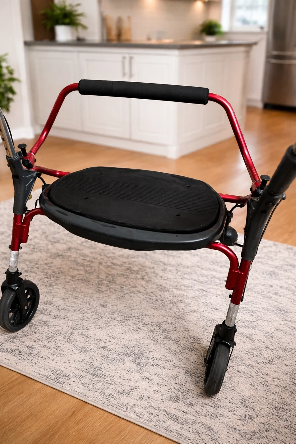 Selling a Drive Medical rollator walker in a nice burgundy colour. It features a comfortable large seat.