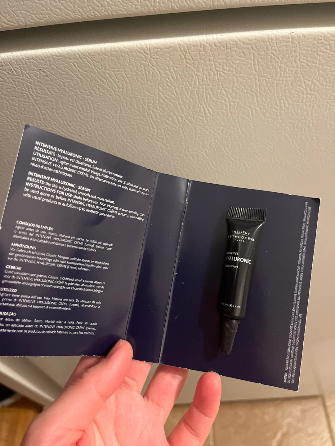 Institut Esthederm Intensive Hyaluronic Serum. It's designed to help with wrinkles, fine lines, and intense dehydration. It results in skin that is rehydrated, plump and more radiant. Use alone or before INTENSIVE HYALURONIC Crème (cream), alternating with usual products or as follow-up to aesthetic procedures
