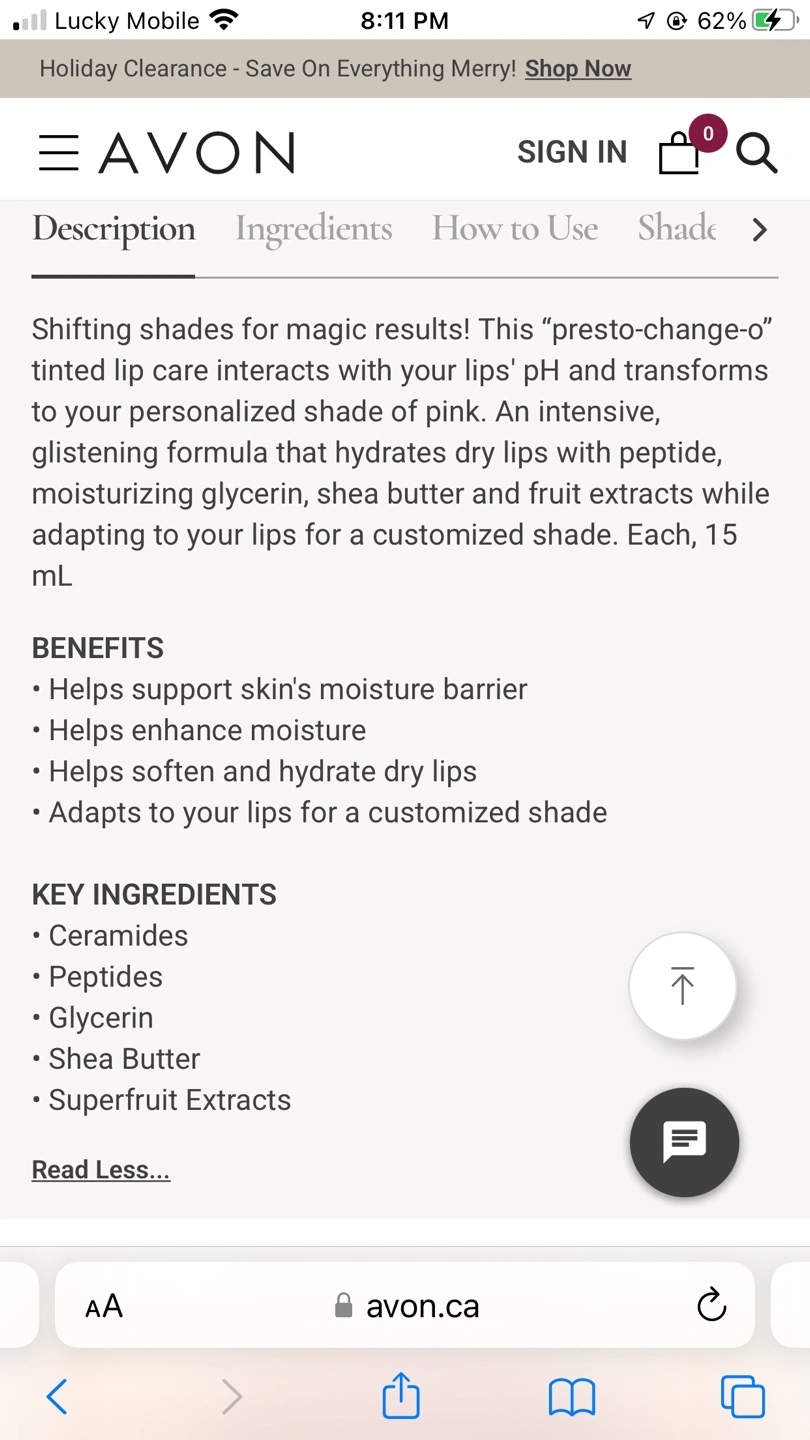 This Avon Beyond Glow Lipcerin hydrates dry lips with peptide, moisturizing glycerin, shea butter and fruit extracts while adapting to your lips for a customized shade! It helps support skin's moisture barrier, enhance moisture, and soften dry lips. Each container holds 15 mL. Color changes with your mood . $25.99 each message me to put in an order . Can do cash , etransfer or can order online on your own .