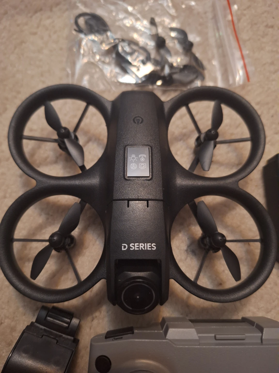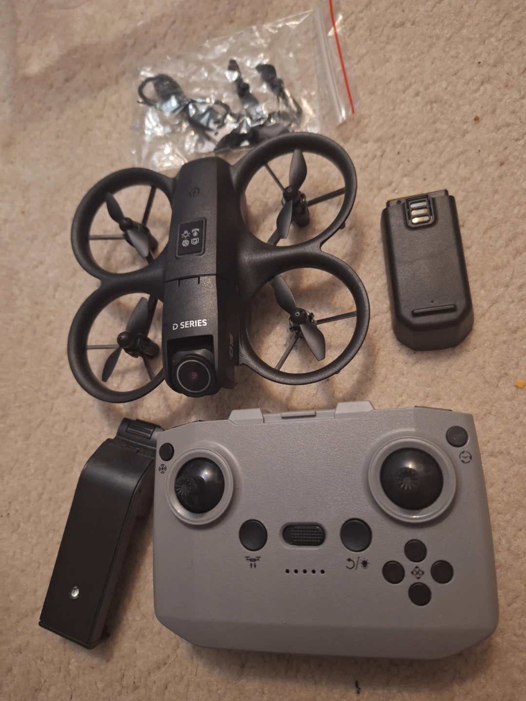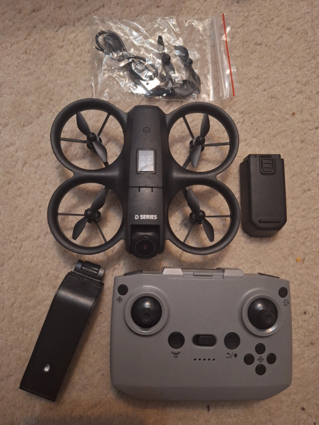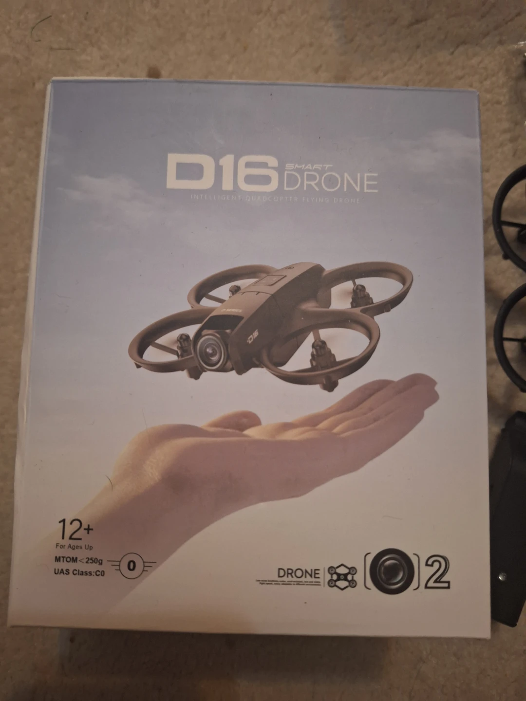 Selling a D16 Smart Drone, an intelligent quadcopter flying drone! It comes with the remote control, two batteries, and extra propellers. The box is included. It's in brand new condition and ready for some fun flights