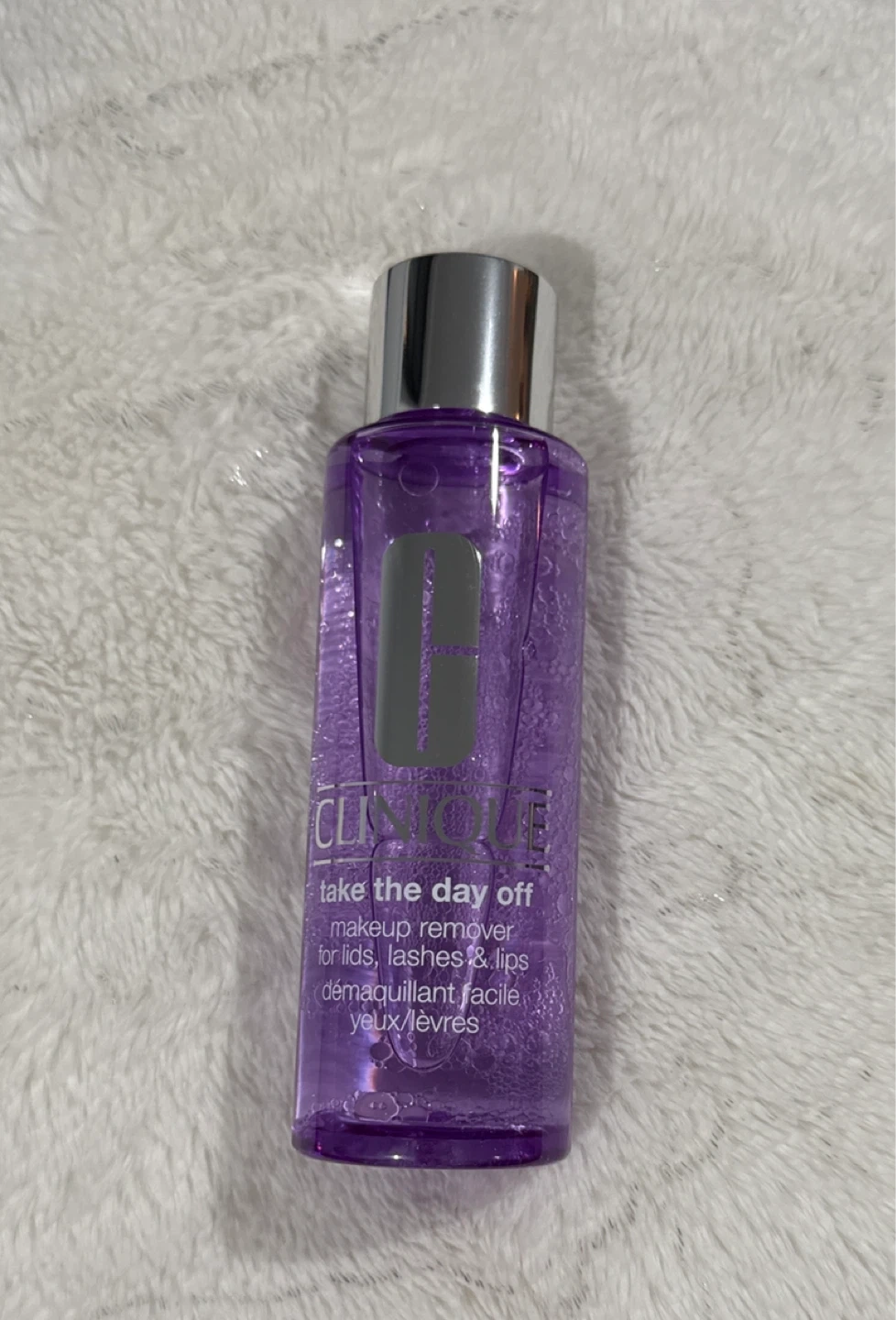 Selling a bottle of Clinique's Take The Day Off makeup remover for lids, lashes, and lips. It's a gentle and effective way to remove makeup. Perfect for daily use!